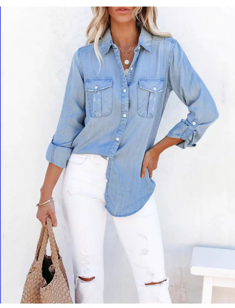 Long Sleeve Light Blue Women Denim Shirt for Casual and Everyday Outfits