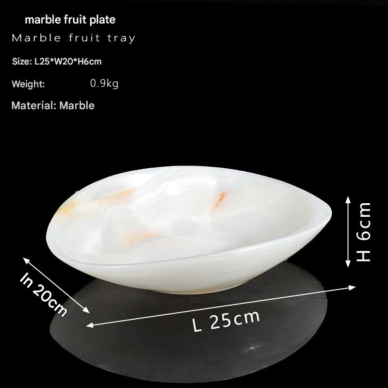 Light Luxury Marble Fruit Plate Natural White Jade Decorative Bowl