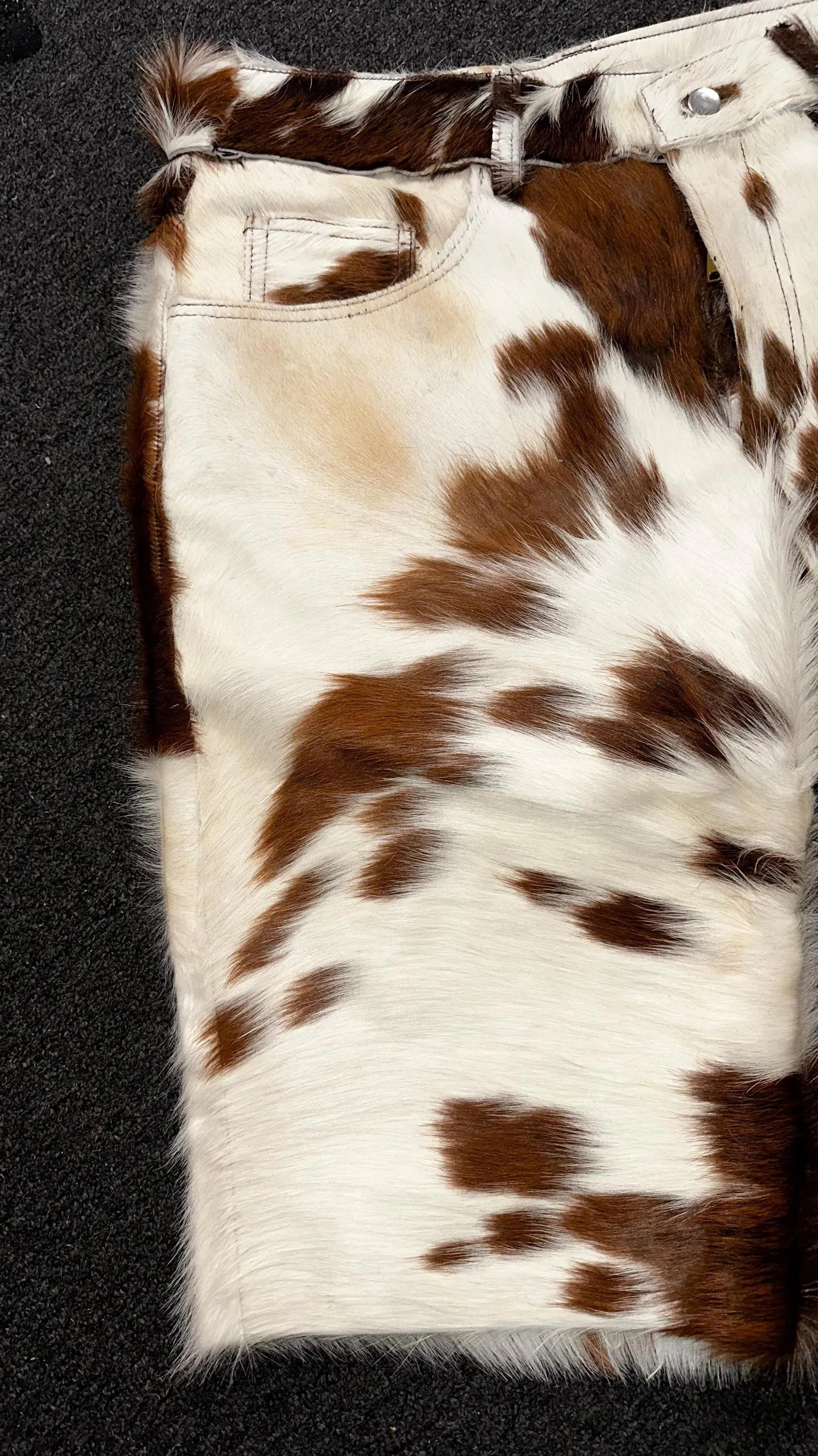 Looking for a unique and memorable gift? These brown white cow fur shorts are an excellent choice for anyone who loves western fashion, rodeo events, or country-style clothing. Perfect for birthdays, holidays, and special occasions, these men cow fur shorts bring a cowboy-inspired touch to any wardrobe.