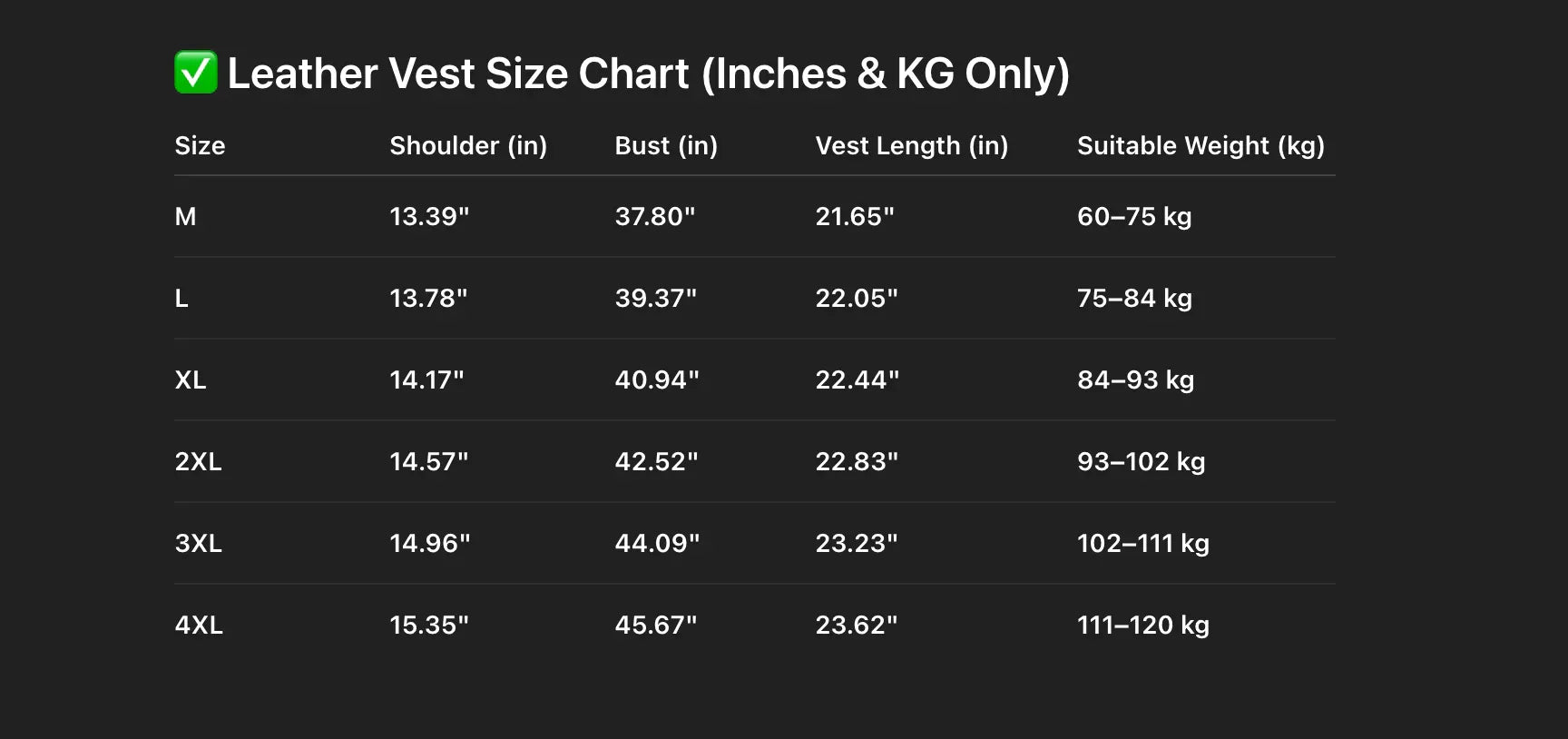 • It takes approx seven business days to complete each leather vest due to careful cutting, tanning, panel alignment, and finishing