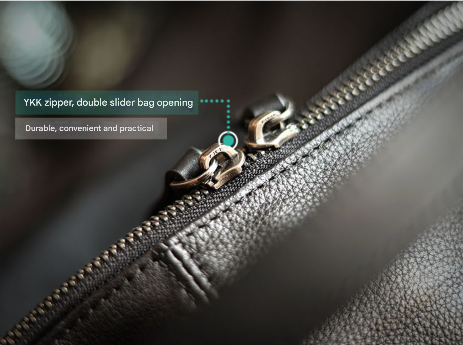 - High-quality YKK double-slider zipper for smooth, secure bag opening and closing.