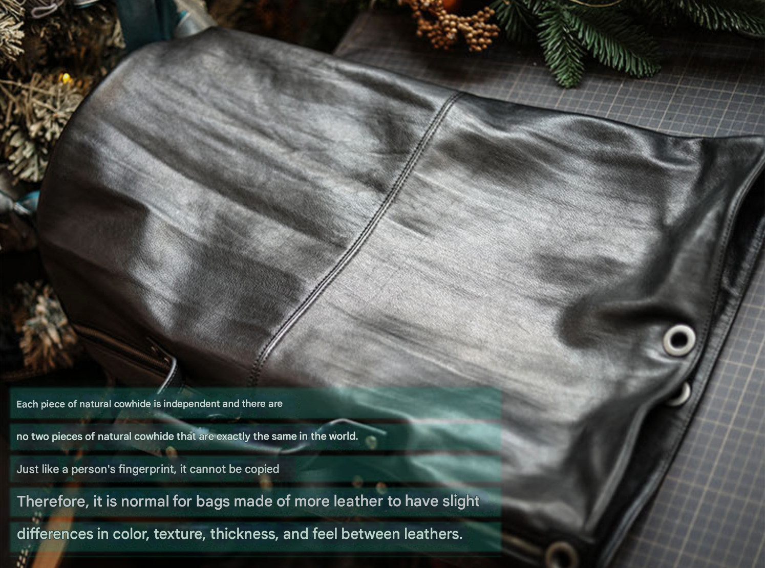 - Natural cowhide texture ensures every leather duffel overnight bag is unique in grain, thickness, and tone.