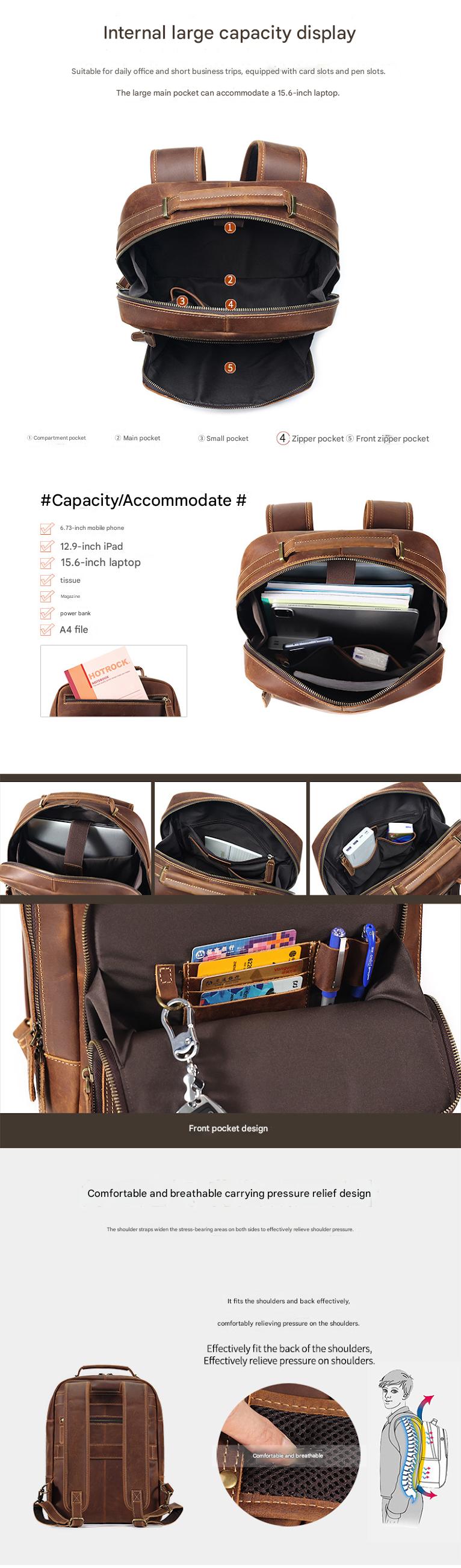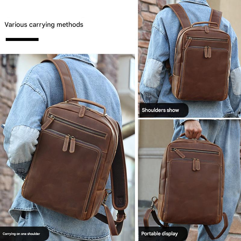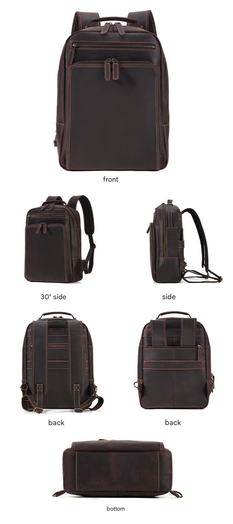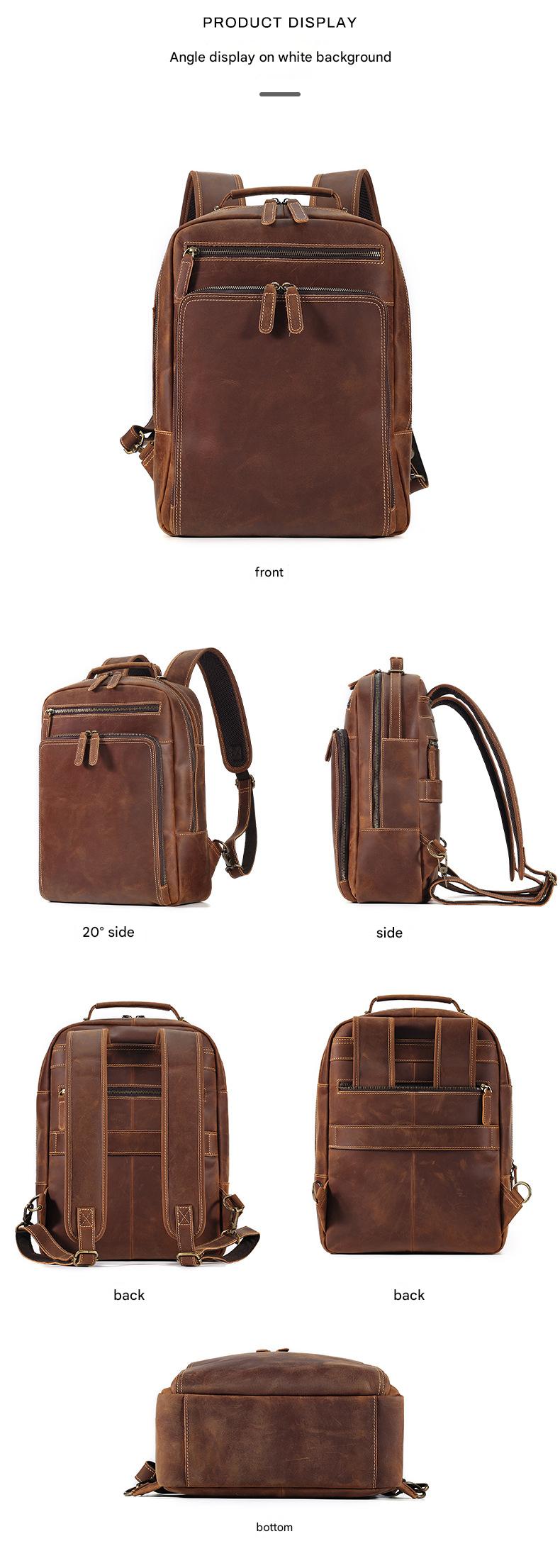 - Vintage genuine leather men’s backpack made from premium crazy horse cowhide with retro finish