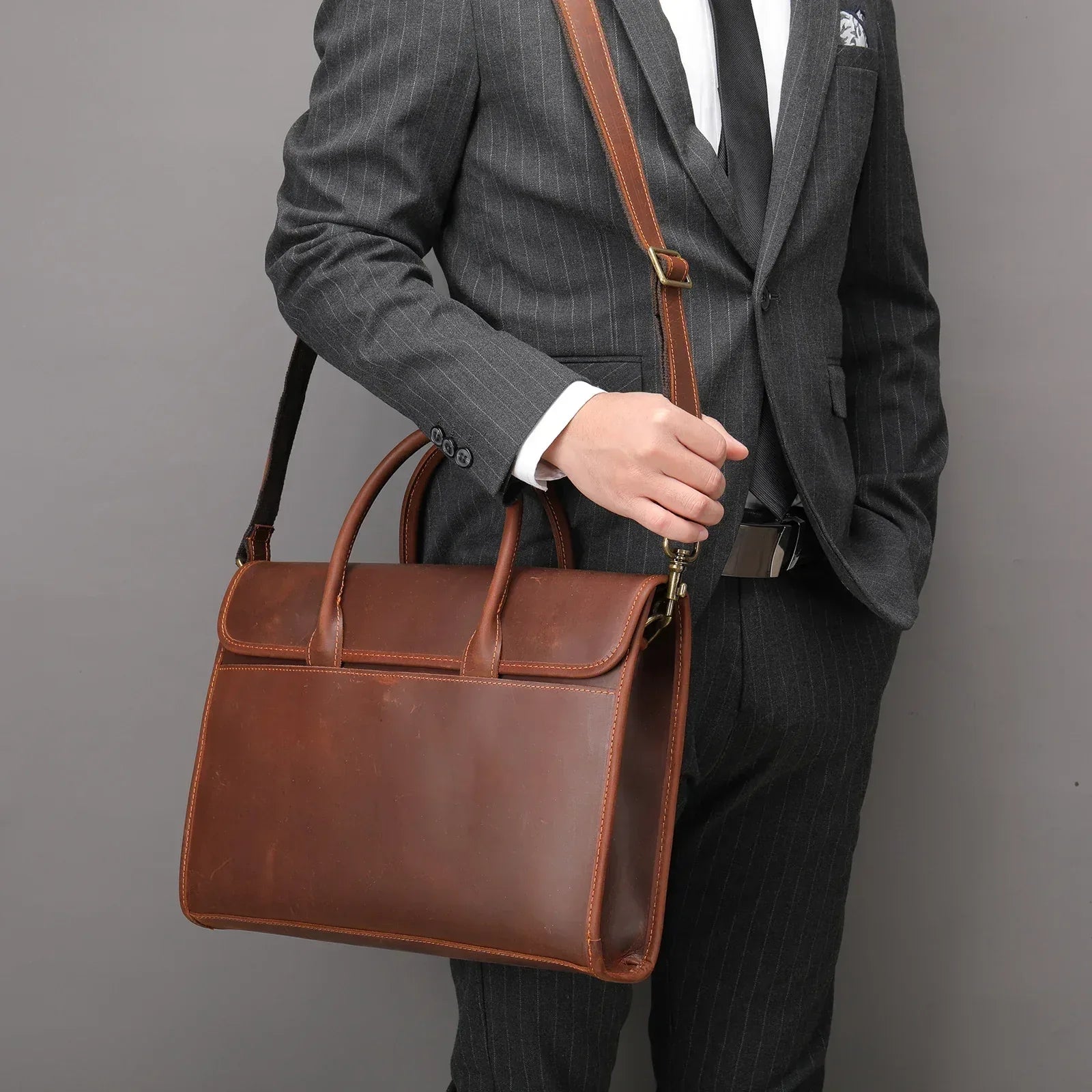 With dedicated compartments for laptops, documents, and business tools, this men’s leather messenger briefcase bag alternative ensures efficient organization. The structured design supports upright positioning, protecting contents while maintaining a professional profile. Whether used for meetings, travel, or office environments, this leather briefcase laptop bag delivers long-term reliability and executive functionality.