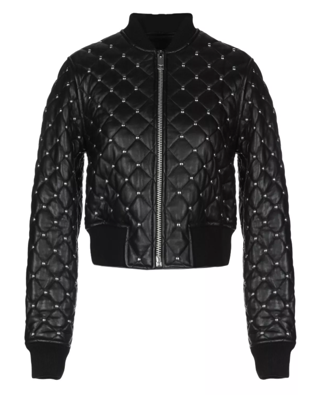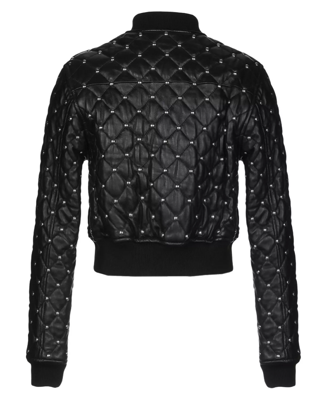 A bold, quilted leather jacket with silver stud detailing for a strong and confident appearance, combining toughness with modern edge.