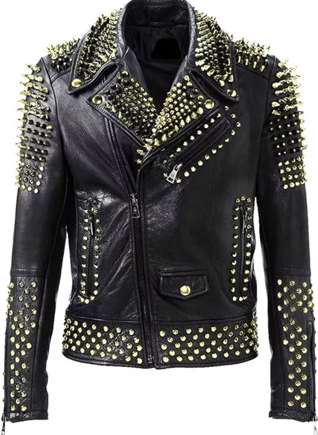 - Golden Studs & Spikes: Decorated with golden studs and spikes on the front, back, and sleeves for an eye-catching punk rock vibe.