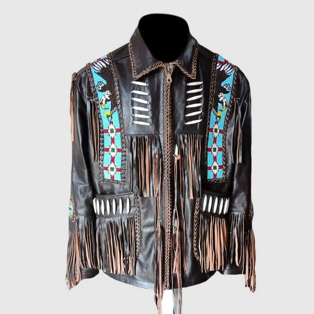 For those looking to incorporate heritage-inspired fashion into their wardrobe, this indian jacket men pairs well with denim and boots for a rugged, authentic look. Whether worn at cultural gatherings, festivals, or simply as a statement piece, it embodies a distinctive presence. The combination of rich leather, meticulous beadwork, and traditional fringe detailing makes this native american coat more than just outerwear—it is an expression of individuality and respect for indigenous artistry.