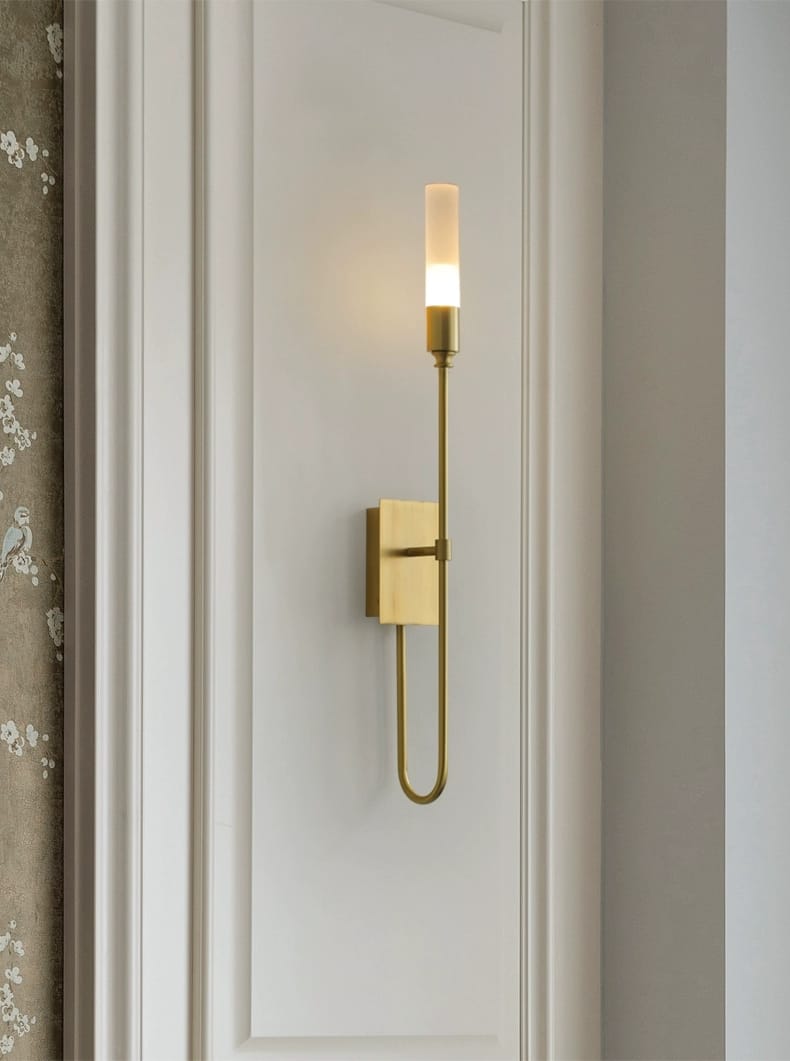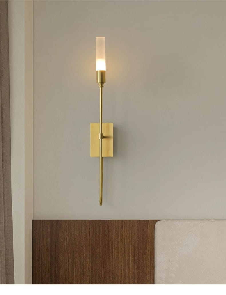 This modern brass wall sconce delivers a refined minimalist design perfect for bedrooms, living rooms, and corridors. Its solid H65 brass structure and frosted acrylic lampshade produce a warm, inviting glow (2700K–3500K) that elevates interior aesthetics. The minimalist copper wall lamp for bedroom merges energy-efficient G9 LED light technology with sleek lines and premium craftsmanship, creating an eye-catching wall light fixture ideal for both contemporary and luxury spaces. Designed for 110V–220V, this wall sconce ensures versatility, reliability, and long-term style impact in any environment.