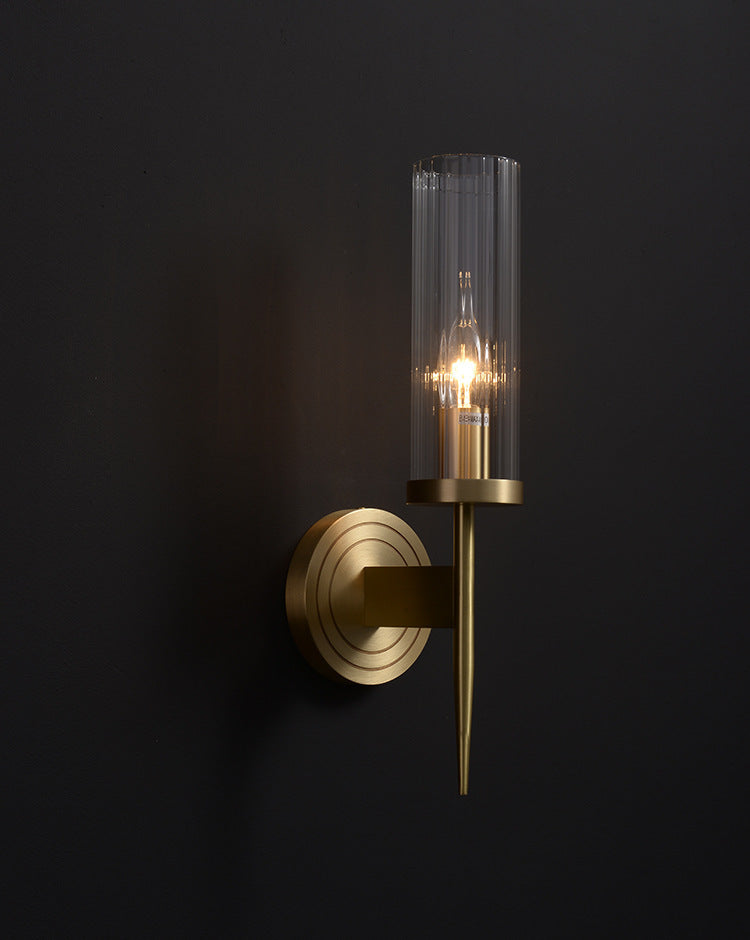 Bring architectural clarity and warmth to your interiors with this modern wall light for bedroom and living room. Featuring a precision-polished copper body and a ribbed glass shade wall-mounted sconce design, it delivers balanced upward illumination ideal for bedrooms, hallways, and living spaces. Each fixture supports E14 LED bulbs, providing adaptable brightness through dimmer compatibility. Whether hardwired or plug-in, this wall light merges form and function with a minimalist presence suited to both modern and mid-century décor. Perfect for refined wall lighting in residential or hospitality environments.