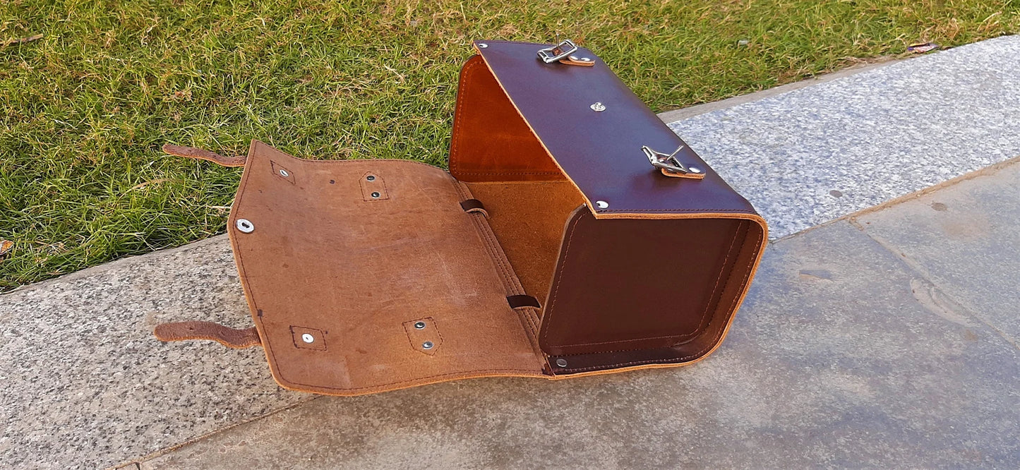 Riding a motorcycle requires convenience, and carrying your essentials should never be a hassle. This leather pannier bag offers the perfect storage solution for bikers who need space for tools, accessories, and gear. Designed for both function and a classic touch, this bike leather saddle bag adds a vintage appeal while keeping your belongings secure. Whether you're commuting daily or going on long-distance road trips, this motorbike saddle bag is a must-have for your setup.