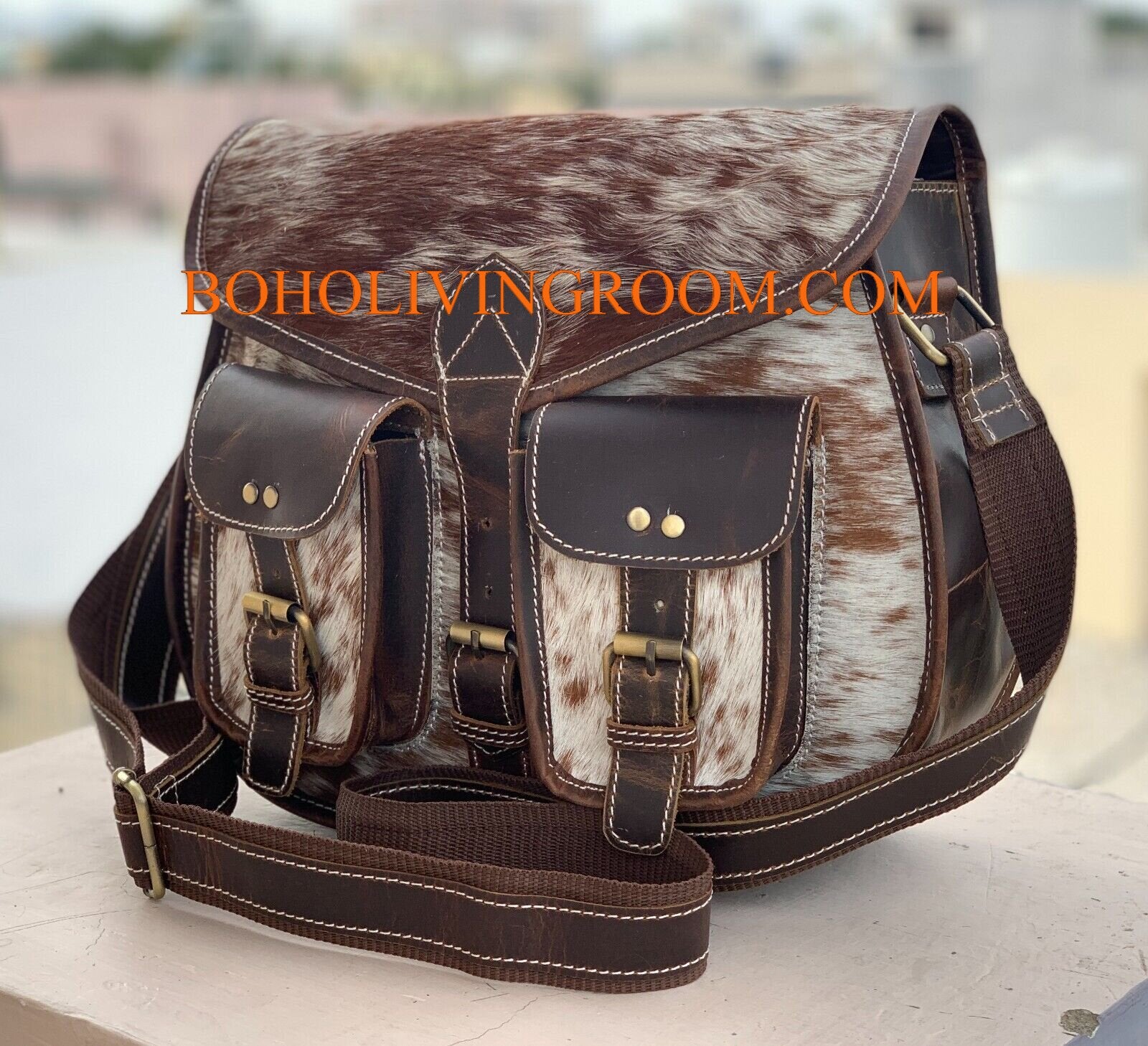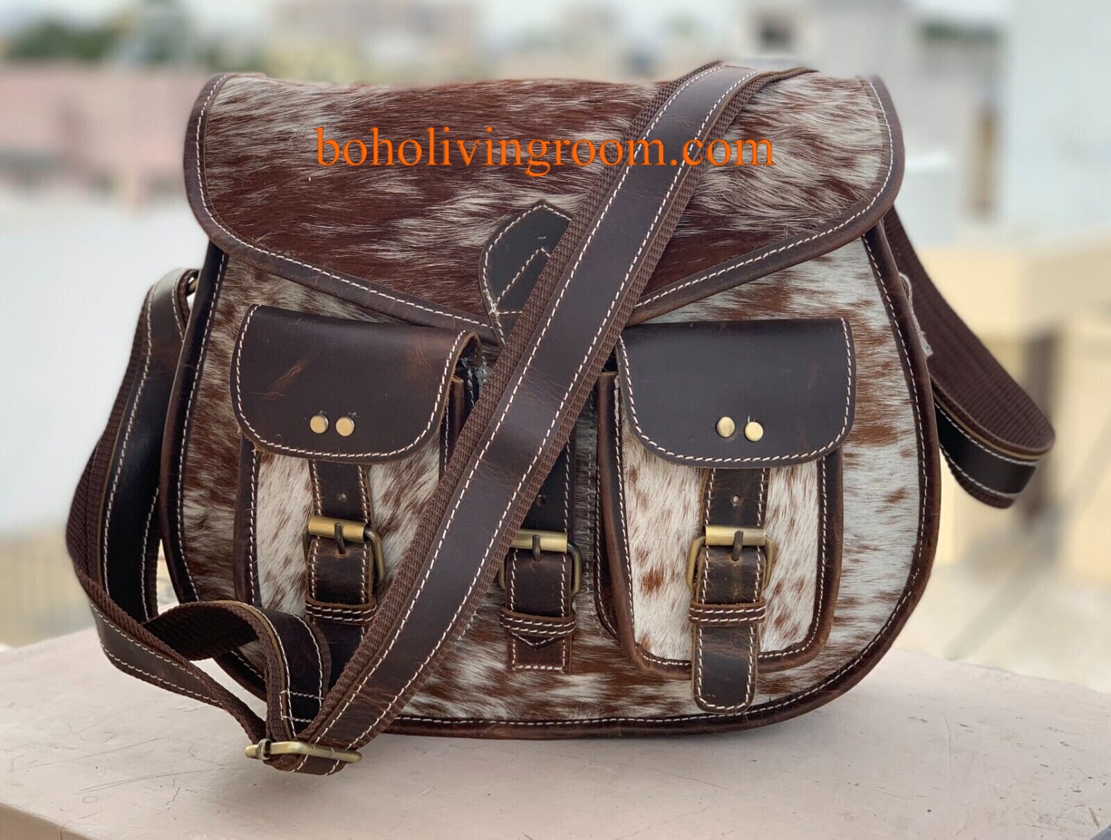 The real cowhide crossbody bag is the perfect accessory for anyone looking to add a touch of rustic charm to their wardrobe. This particular bag features a dark brown and white speckled pattern, giving it a unique and eye-catching look that is sure to turn heads. Made from natural and soft cowhide leather, this crossbody bag is not only stylish but also comfortable to wear.