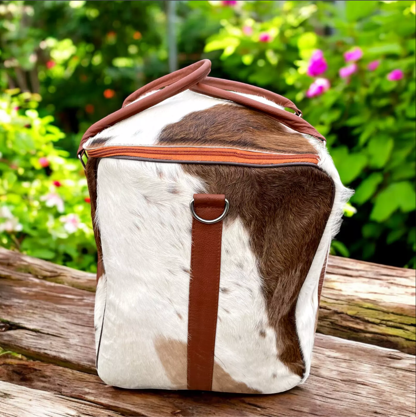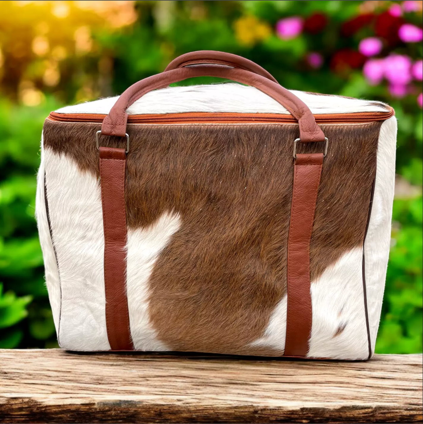 Add Rustic Charm to Your Outdoor Adventures with a Cowhide Picnic Bag