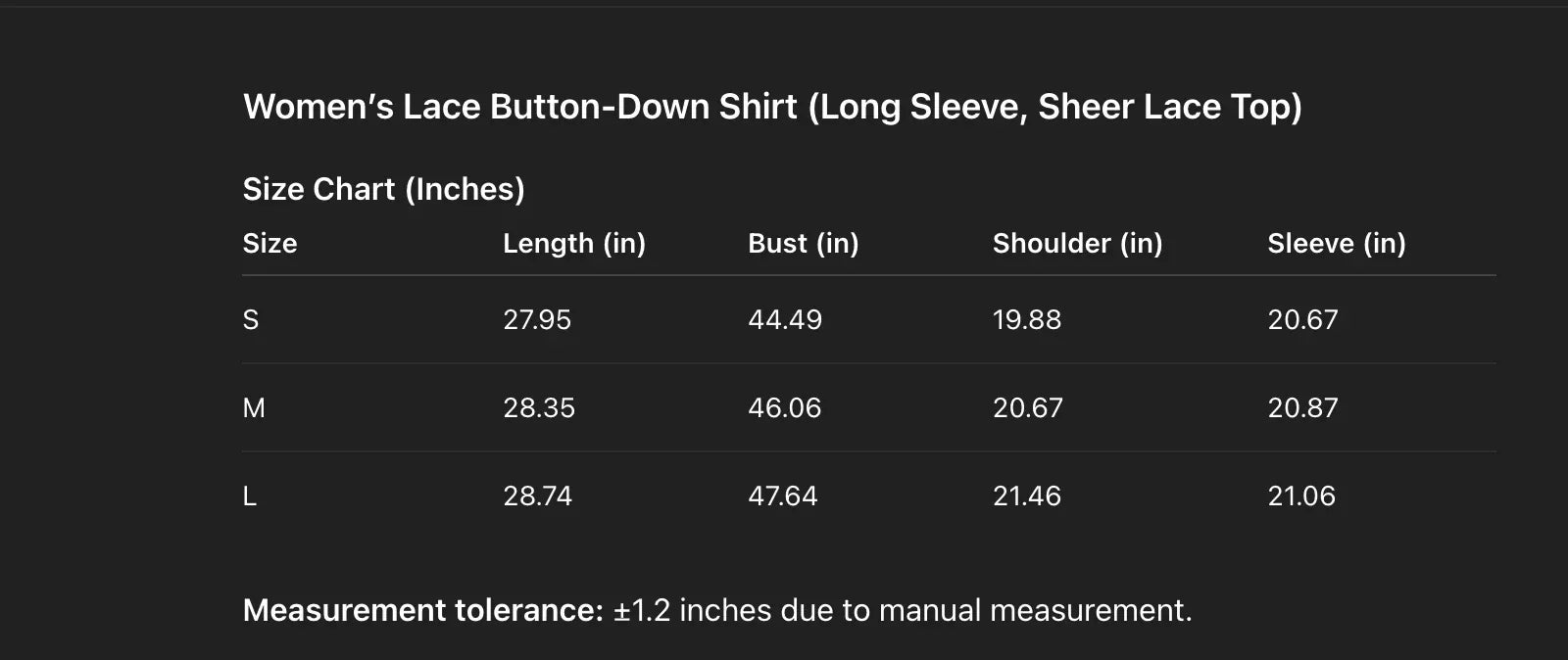• Please check the size chart carefully before ordering, if you need help message us anytime, each lace shirt jacket requires high skill and materials, and margins are very small