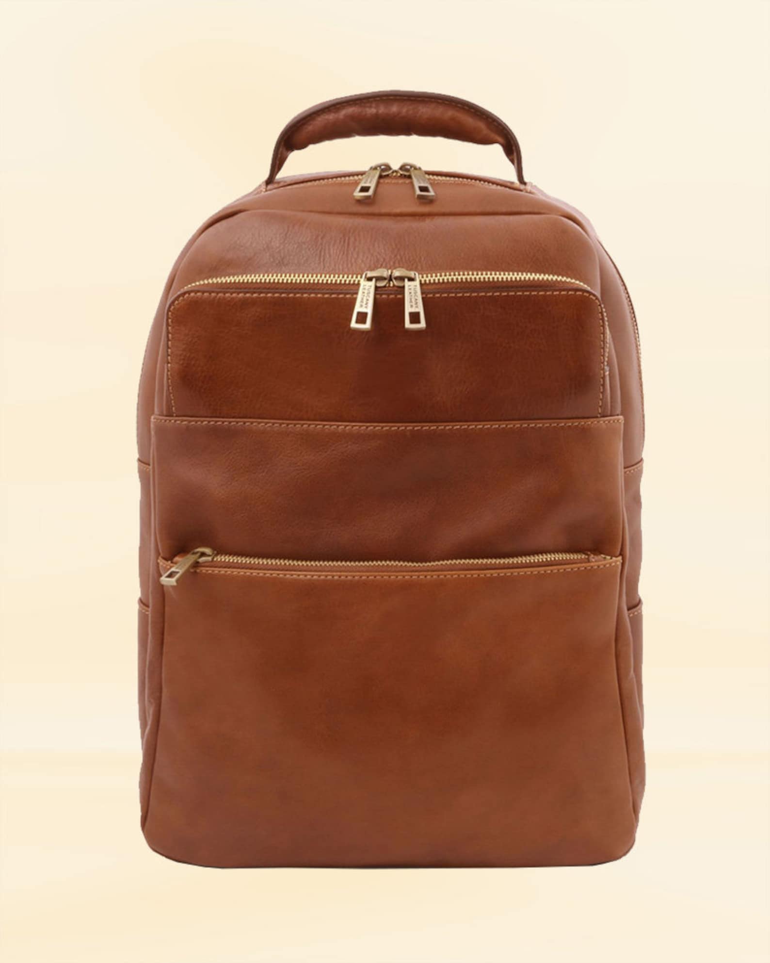 This stylish, premium leather backpack is perfect for traveling! It features over head compartments and fits a laptop, so you'll be ready to go wherever the journey takes you.