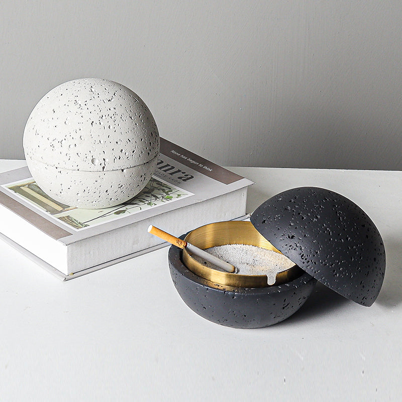 Nordic Design Volcanic Stone Spherical Cement Ashtray Home & Hotel