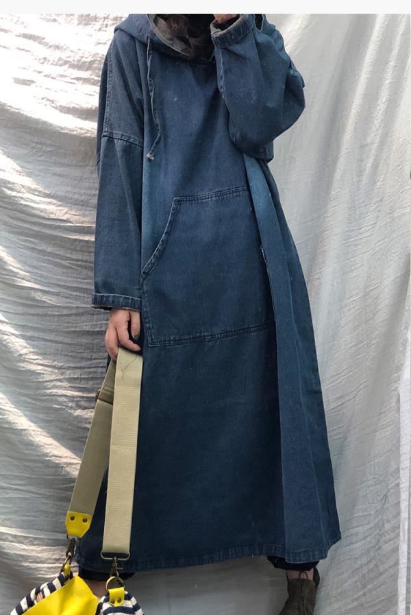 • Loose and modest ankle-length denim hoodie dress women love for breathable movement