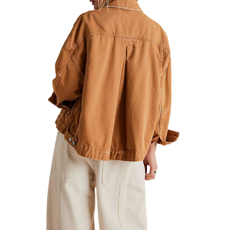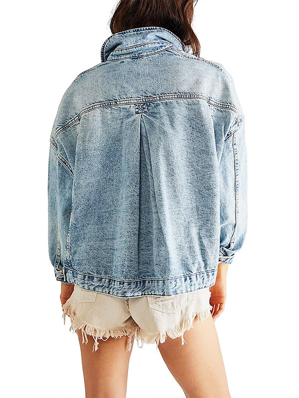 Light Wash Oversized Denim Jacket with Drop Shoulder for Women