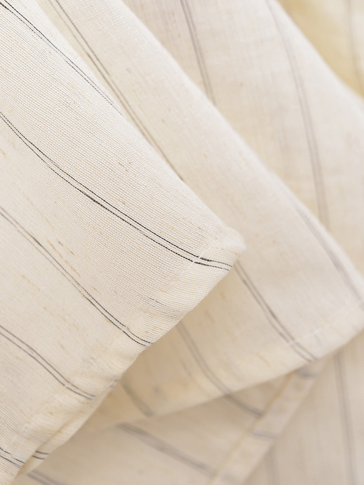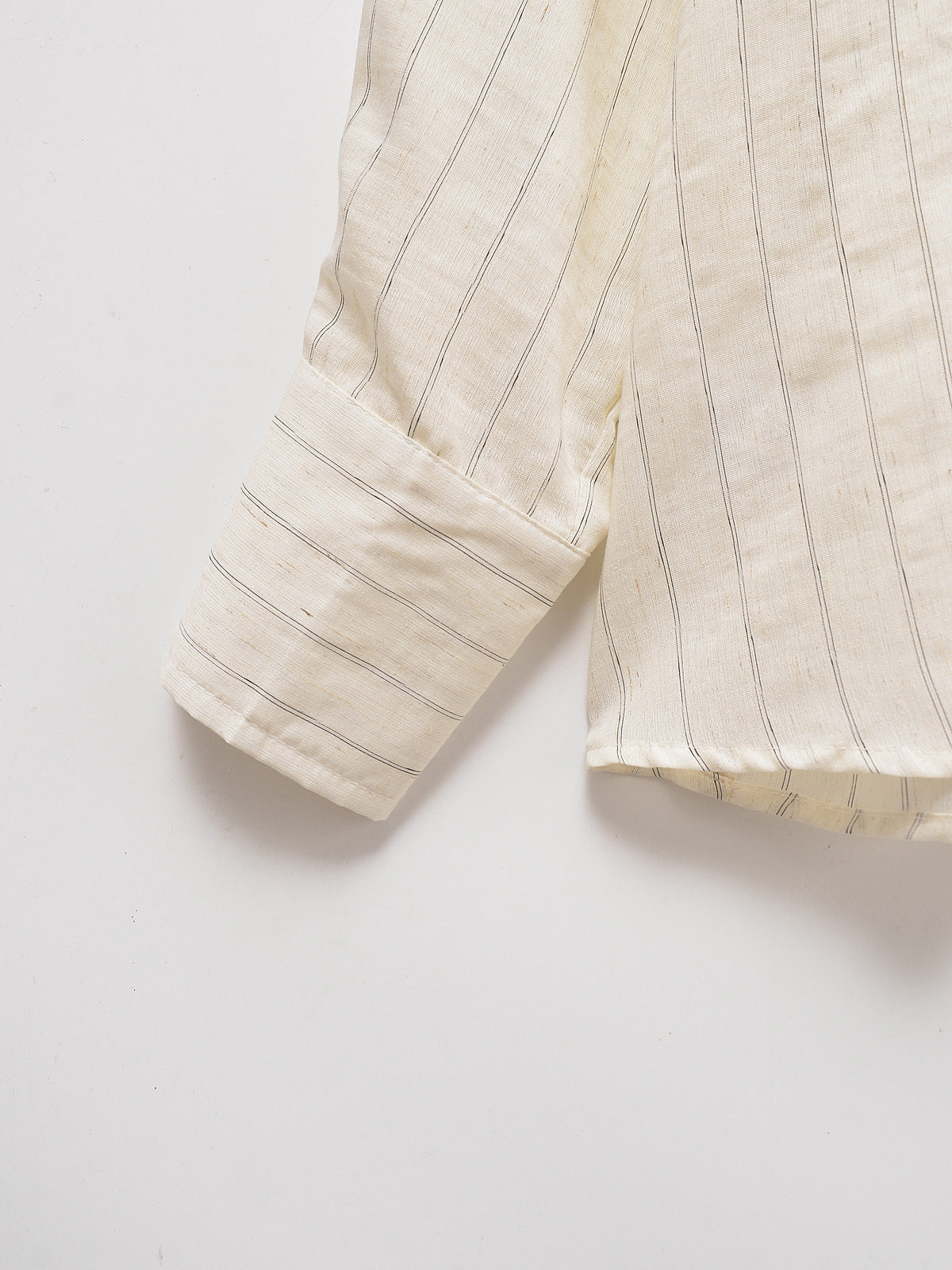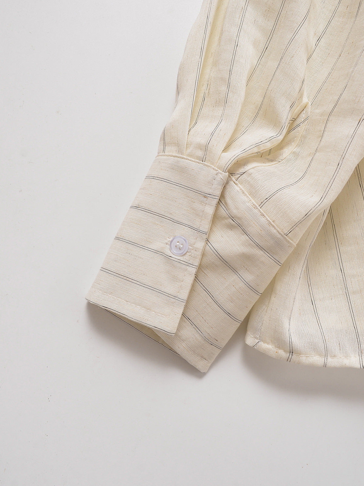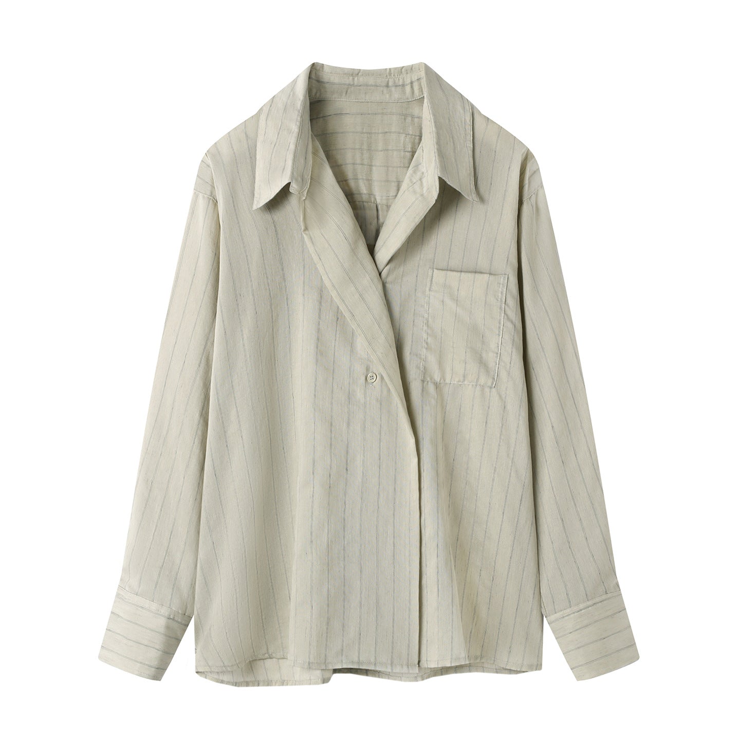 The women's striped long sleeve shirt brings effortless style to your wardrobe. With a crisp vertical stripe pattern and a drop shoulder design, this shirt exudes a relaxed yet polished look. It's versatile enough to wear in the office or for a casual day out, effortlessly transitioning between both settings. As showcased in the images, this shirt pairs well with different outfit combinations – from light-washed denim jeans to tailored skirts – giving you multiple styling options.