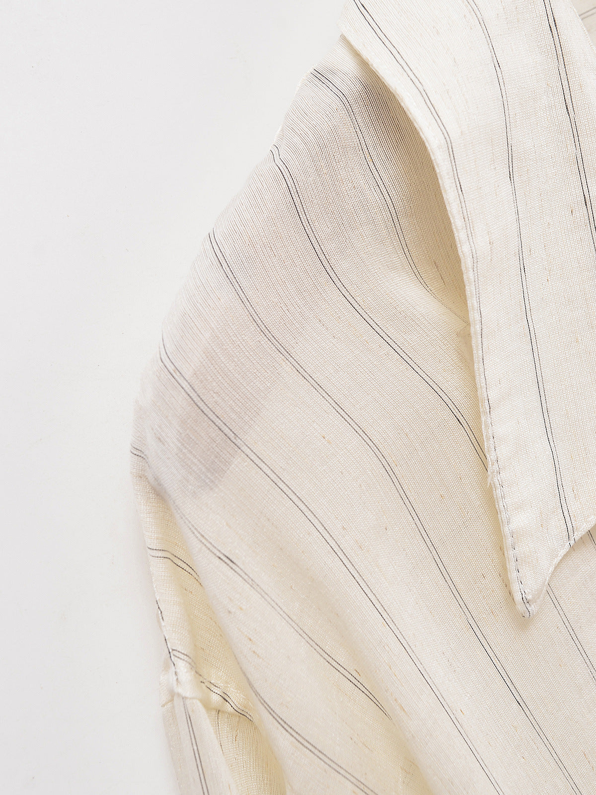 Perfect for the warmer months, the summer striped long sleeve shirt features a lightweight fabric that drapes beautifully on any body type. The loose fit adds comfort, making it ideal for a casual, breezy look while maintaining a touch of elegance. The shirt is shown in various settings – whether at home, out on the town, or even on an adventure – emphasizing its versatility for multiple occasions.