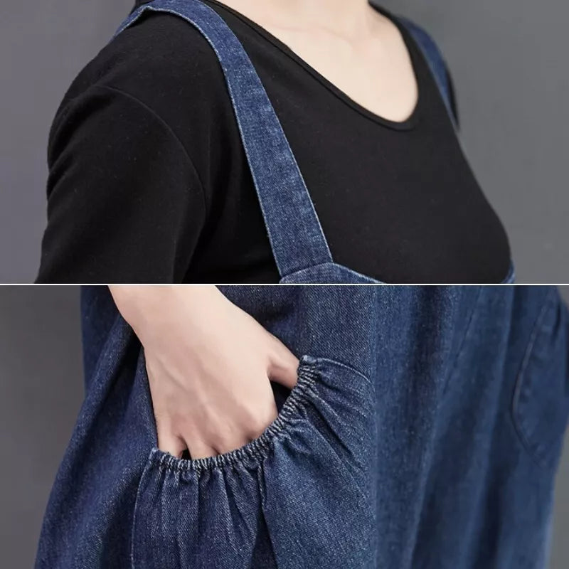 - Oversized baggy denim overalls for women – wide-leg silhouette delivers a loose and relaxed fit