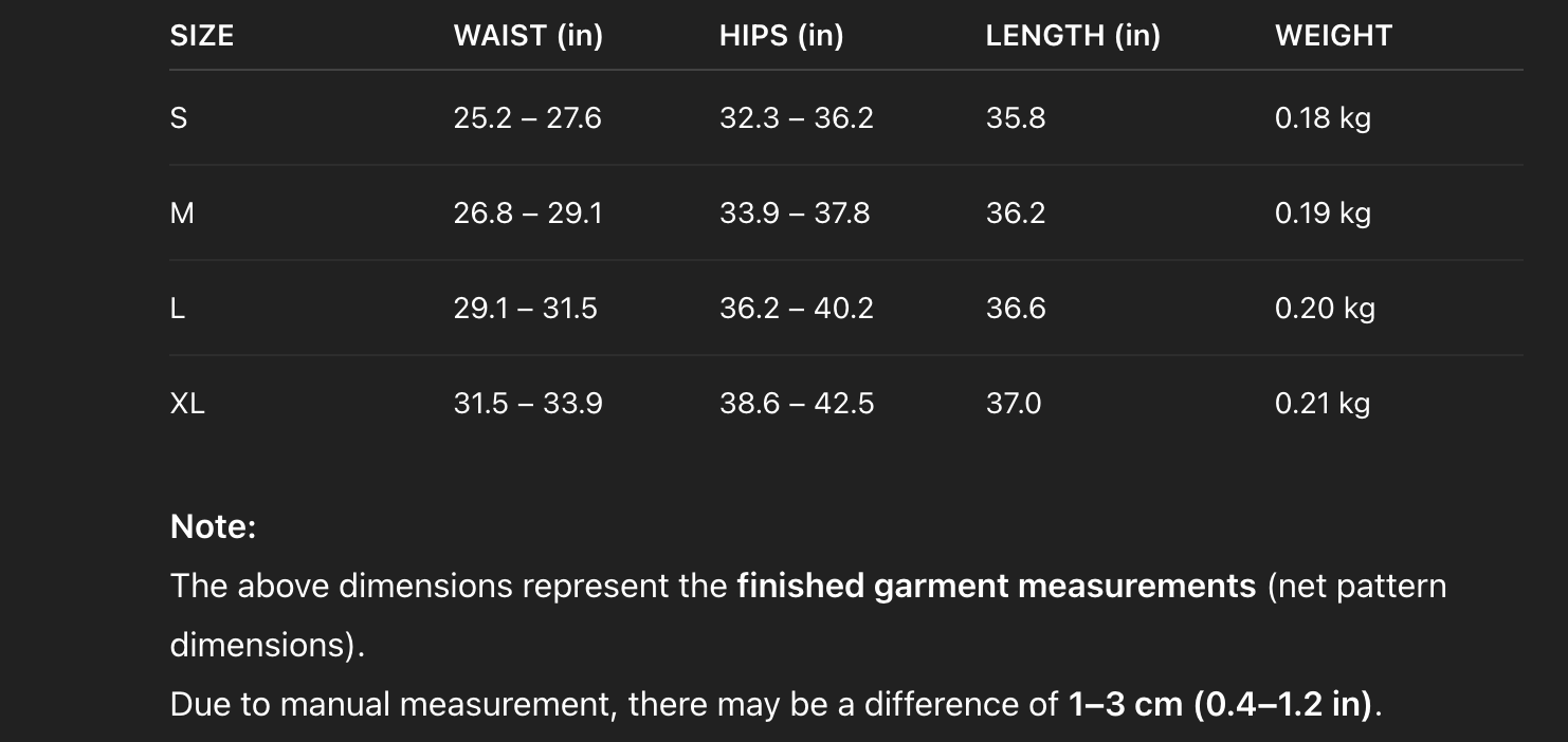- Waist Line: High-waisted design, providing a comfortable and stylish fit.