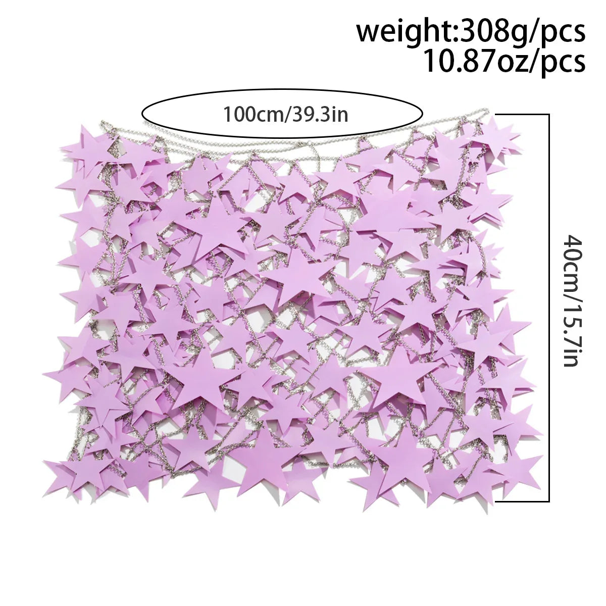- Silver chain mesh connects each star plate, forming a breathable transparent pattern ideal for street photography and stage wear.