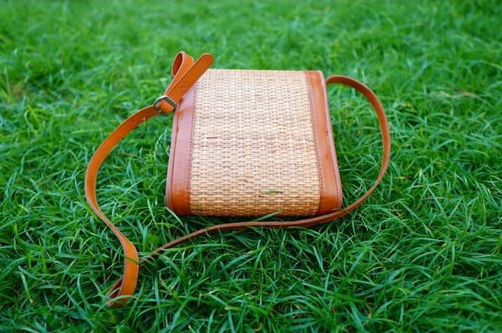 This beautifully woven crossbody combines traditional rattan craftsmanship with leather accents, perfect for any occasion.