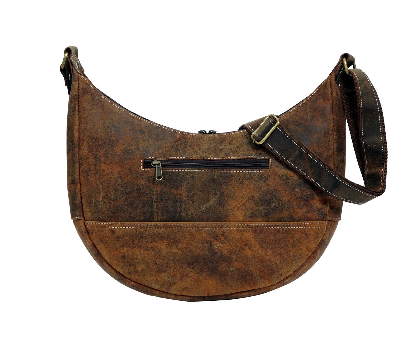 Authentic leather moon bag for your essentials. Practical and durable design for everyday use.