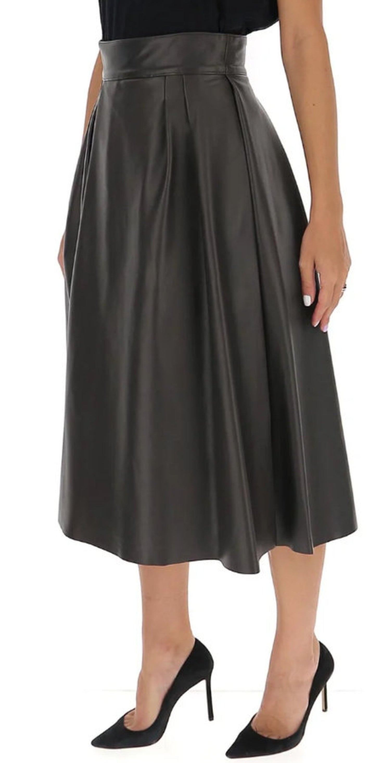 This leather skirt is designed to complement any wardrobe with its sleek silhouette and timeless appeal. The long leather skirt features a high waistband that accentuates the waist while offering a comfortable and secure fit. The carefully placed pleats add volume without overwhelming the design, creating a balance between sophistication and effortless movement. Whether worn for formal events or casual outings, this maxi leather cocktail skirt is an ideal choice for those who appreciate classic style with a modern touch.
