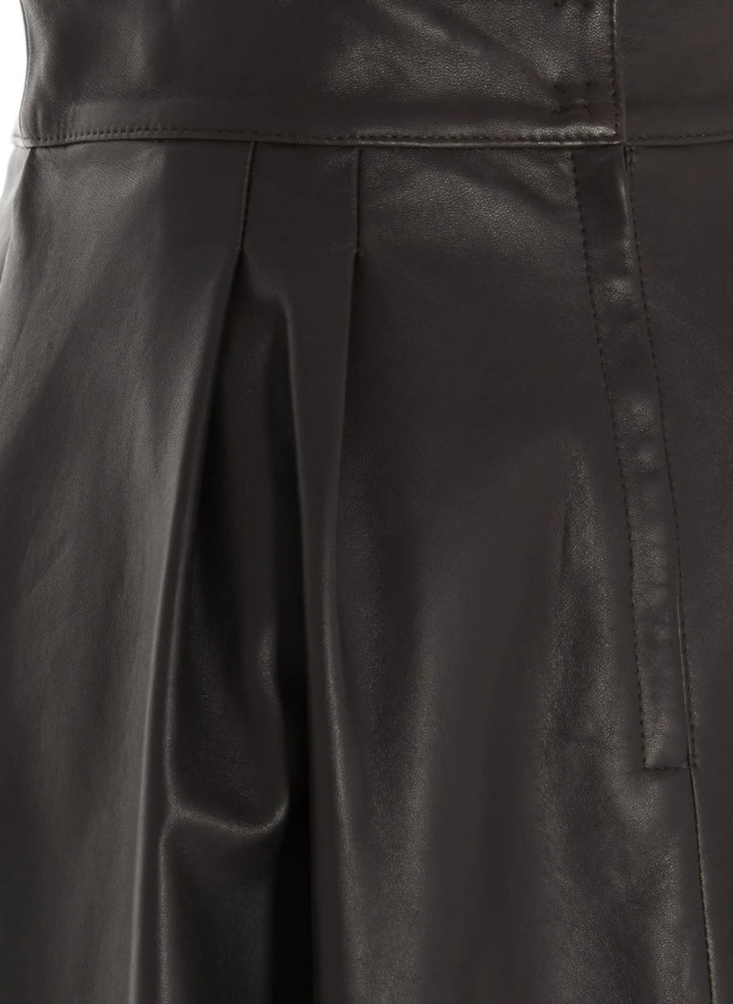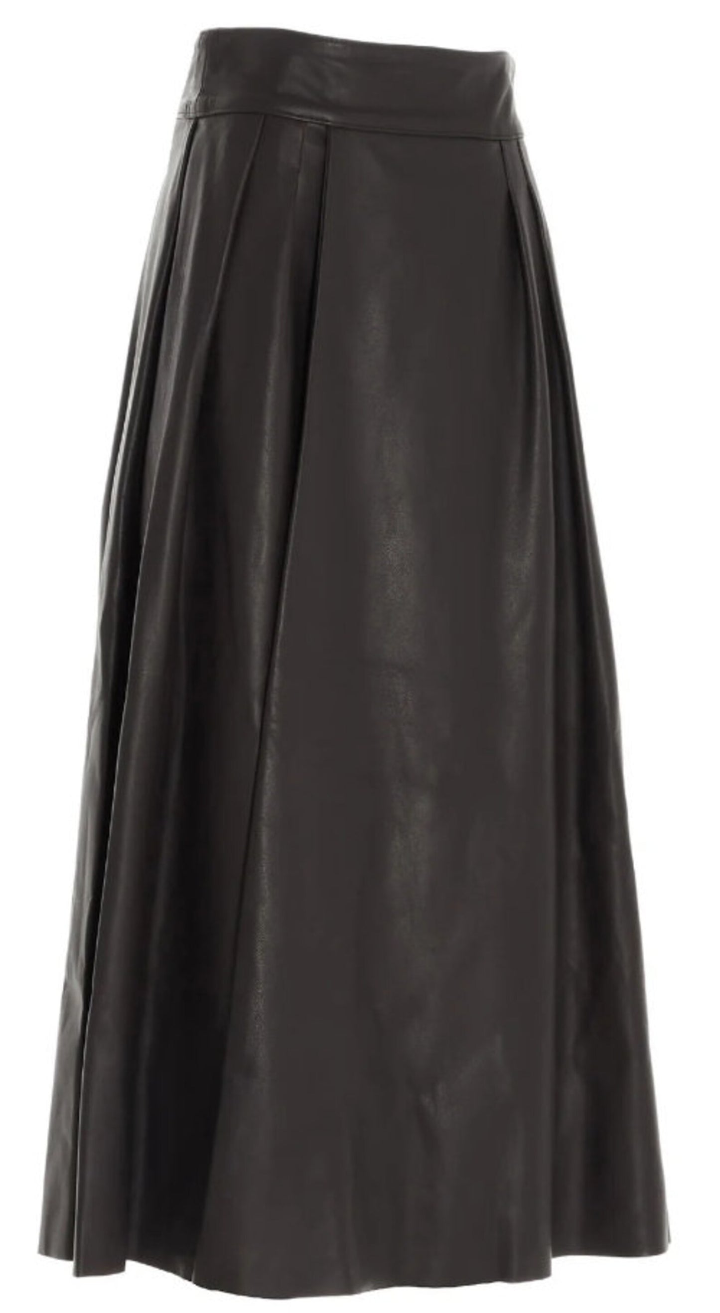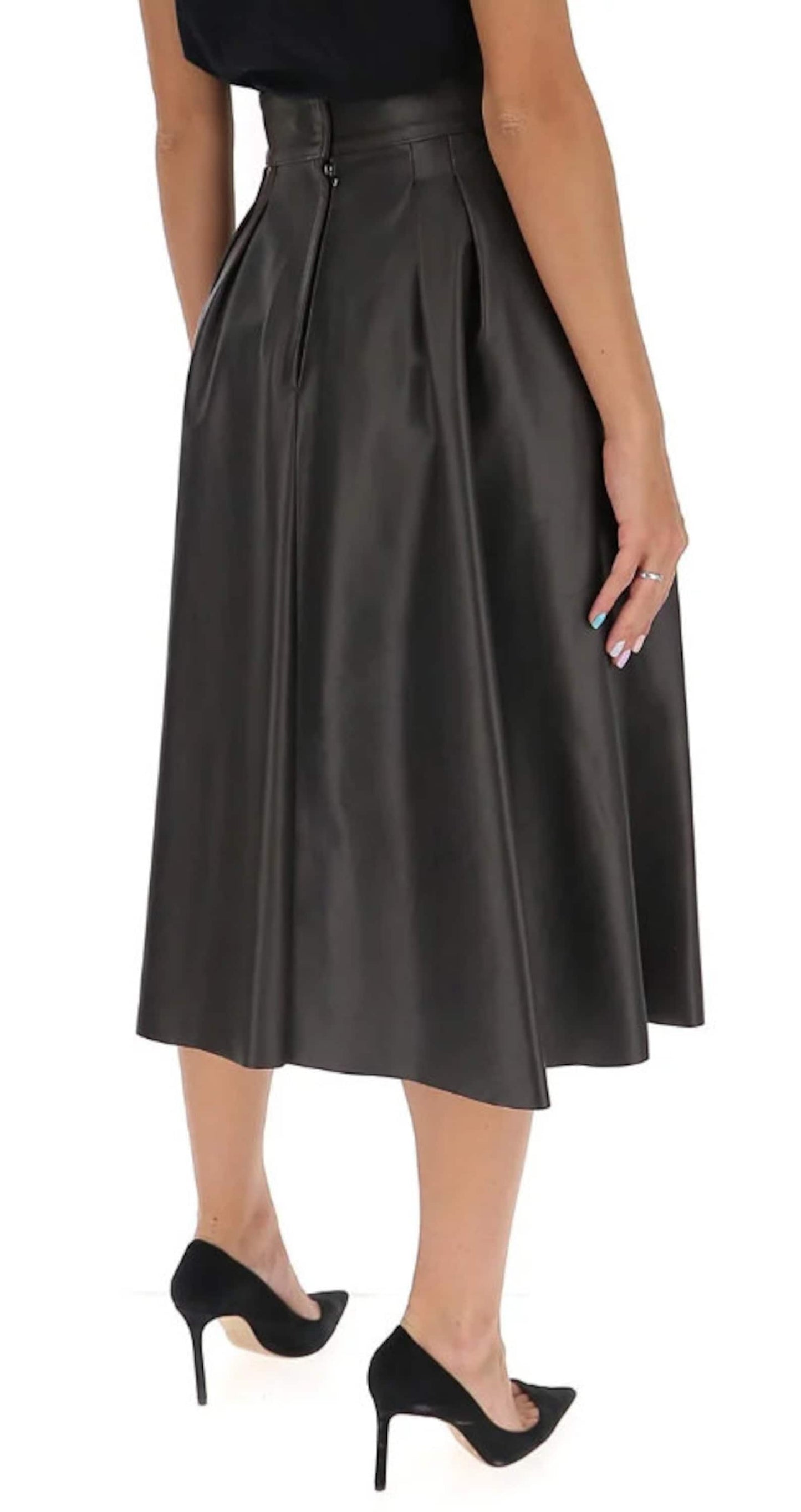 This black leather skirt is a refined addition to any collection, offering a sophisticated yet functional design that suits any occasion.