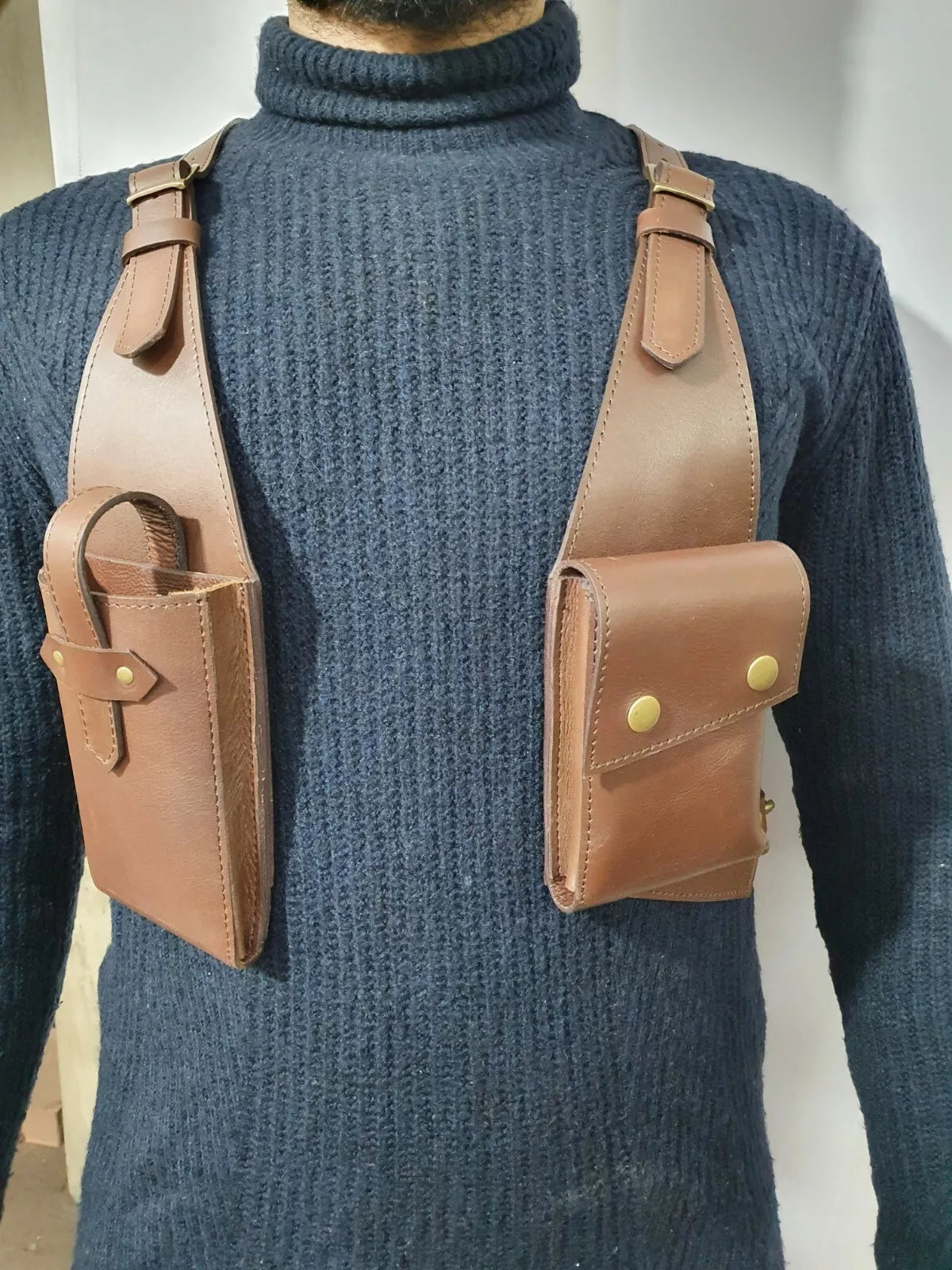Handmade leather holster bag crafted from PU leather.