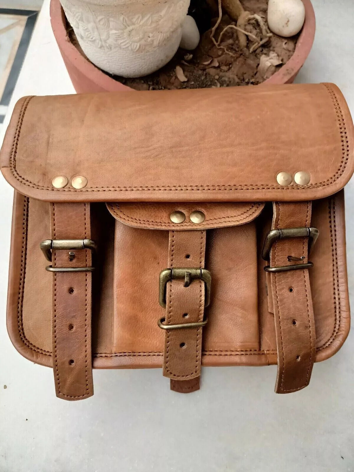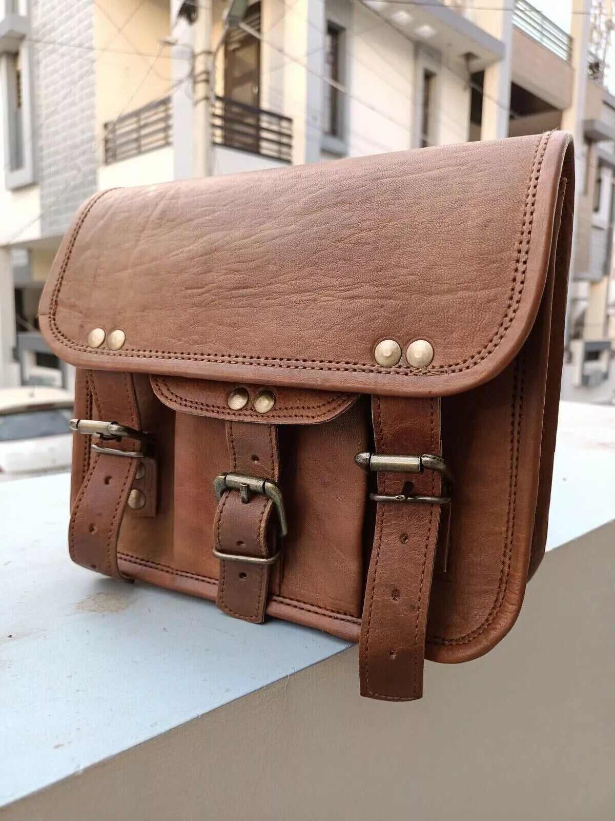 - Top-quality vintage-style brown leather saddle bag, perfect as a pannier, tool pouch, or luggage side bag.