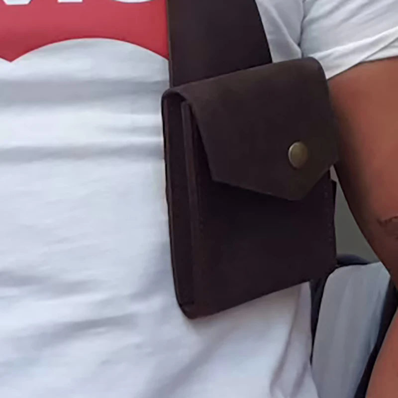 The leather shoulder holster wallet is designed to sit comfortably on your side, making it ideal for carrying items like cash, cards, or small personal effects. This leather wallet holster combines convenience with a minimalist aesthetic, making it suitable for urban commutes or outdoor adventures.