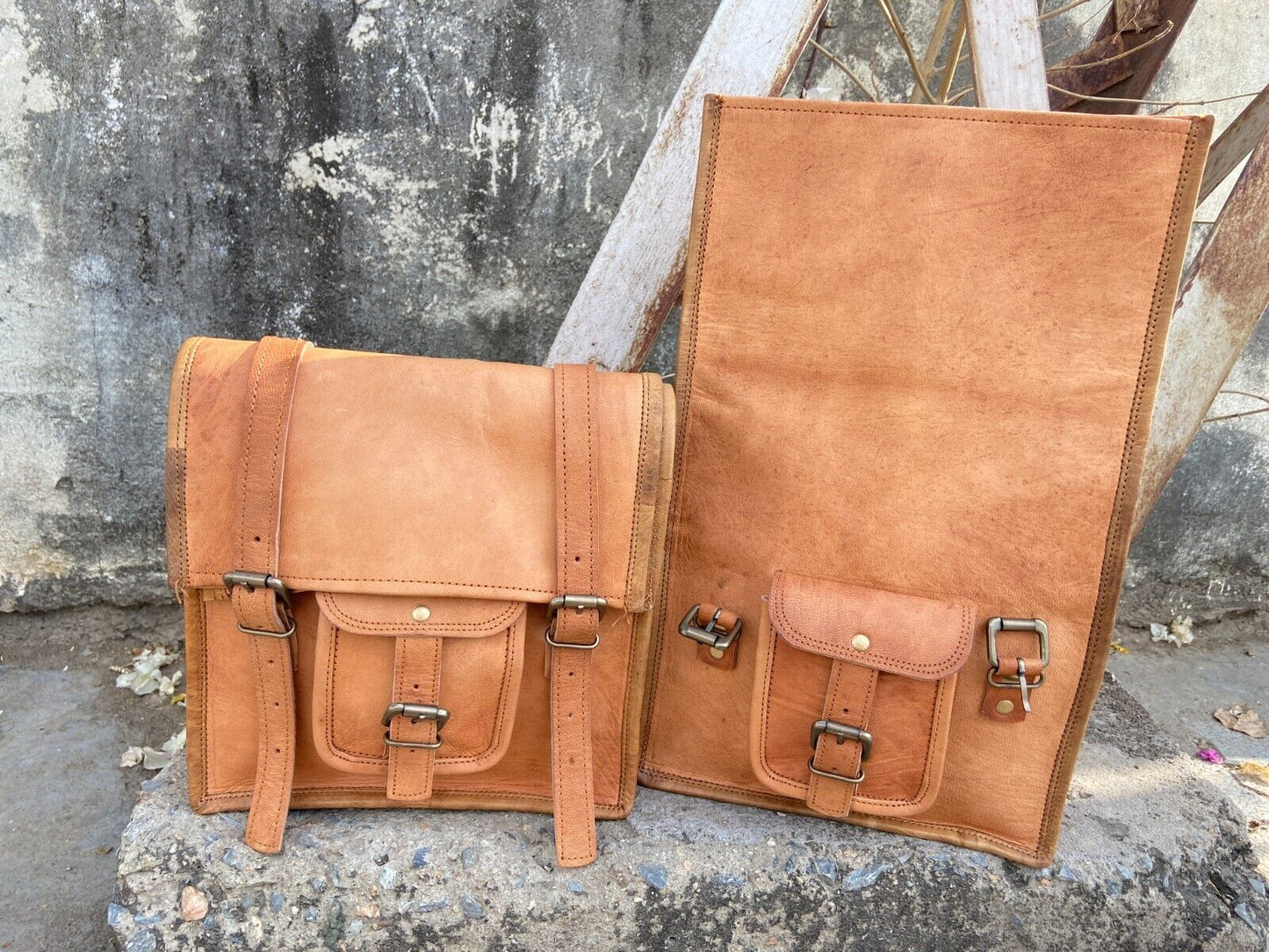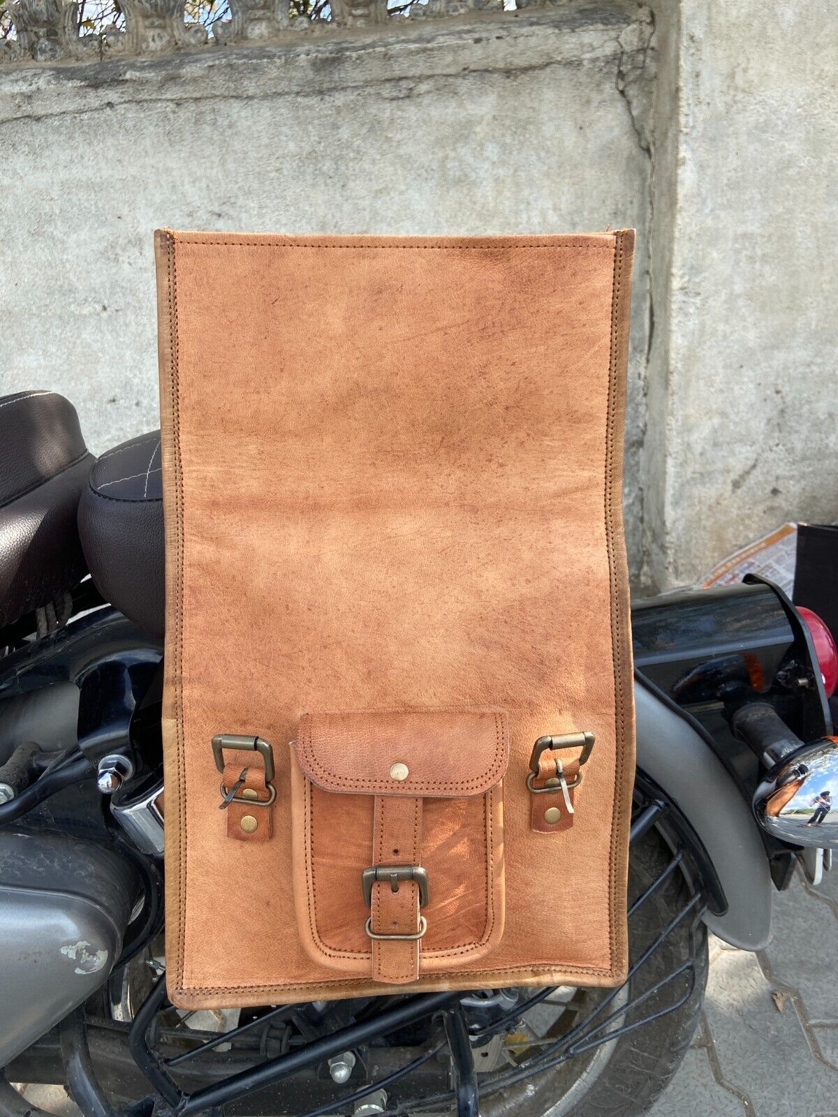 Handmade from genuine high-quality brown leather, each bag tells a unique story as it ages gracefully, developing its own distinctive character. The rugged appearance not only enhances their appeal but also ensures durability during every rough ride you embark upon.