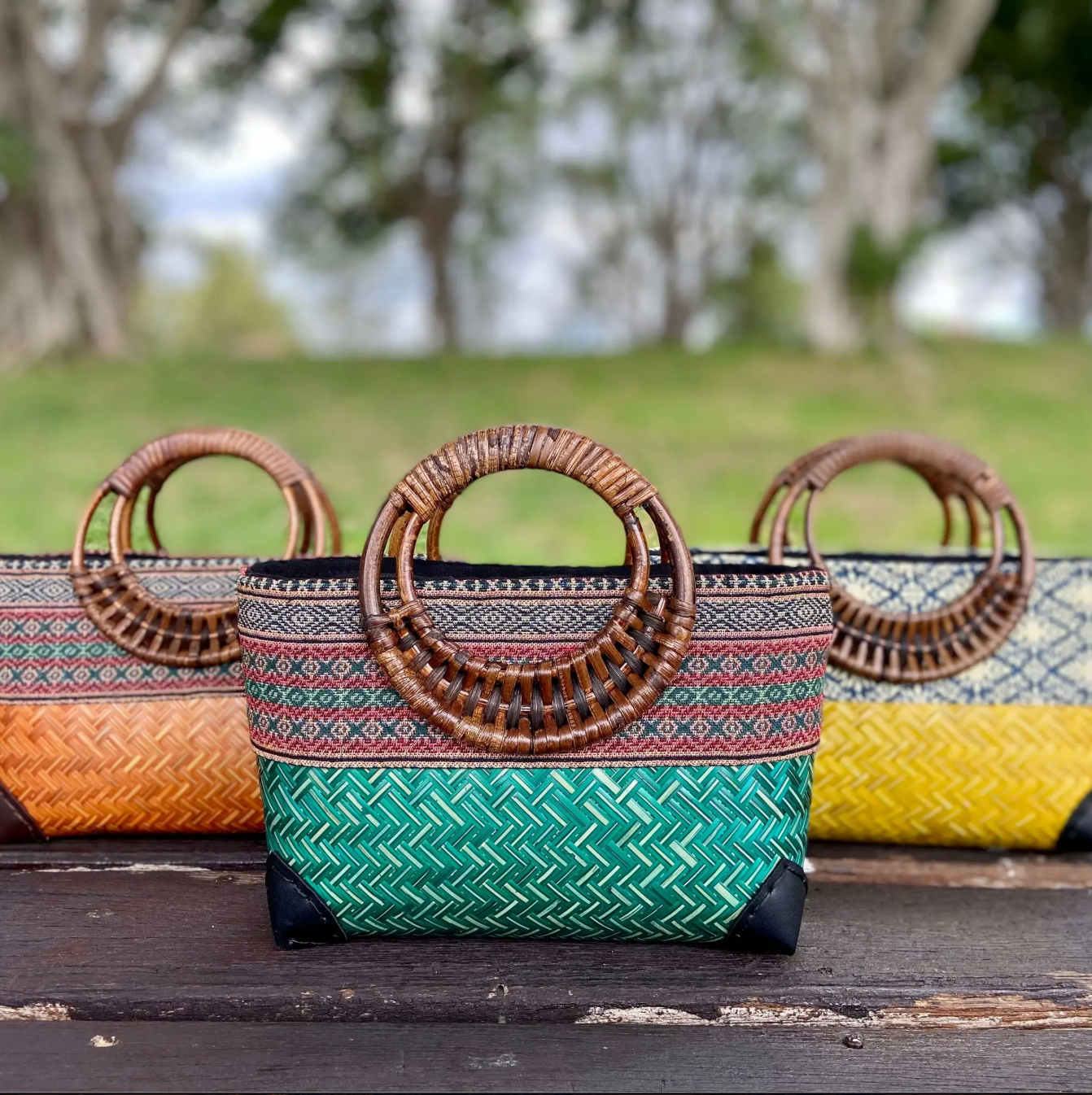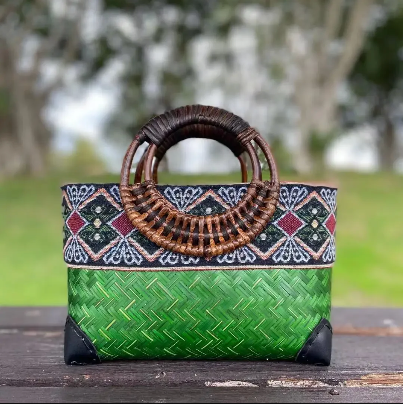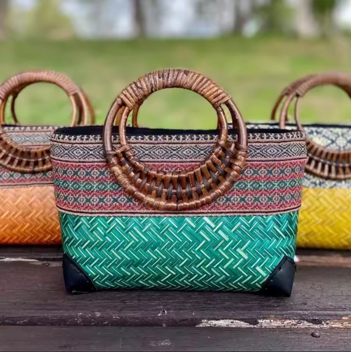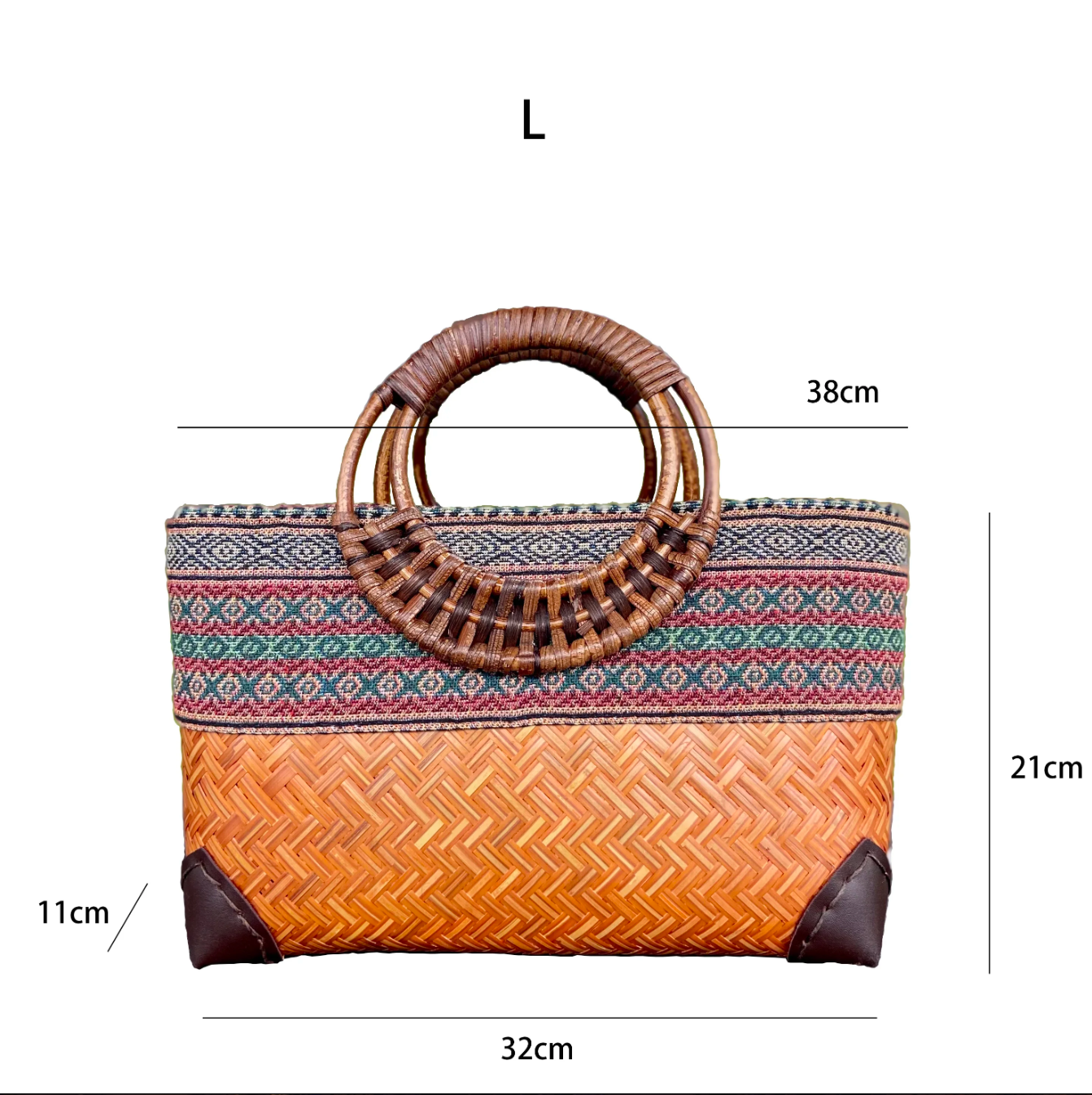 Bring home a retro handmade bamboo woven rattan bag that combines tradition with modern summer fashion. This eco-friendly rattan beach tote is lightweight, spacious, and designed for comfort with sturdy round handles. The patterned woven textile adds cultural detail, making it a standout among beach bags and totes. Ideal as a rattan handbag, designer straw bag, or summer tote bag, it fits daily essentials while enhancing any outfit. Whether you’re heading to the beach, a summer getaway, or city outings, this bag delivers style, sustainability, and everyday function.