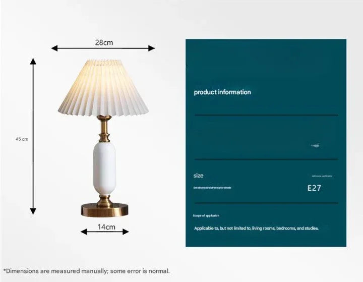 - Korean retro vintage look with pleated shade and column base designed for bedside table lamps in guesthouses and bedrooms