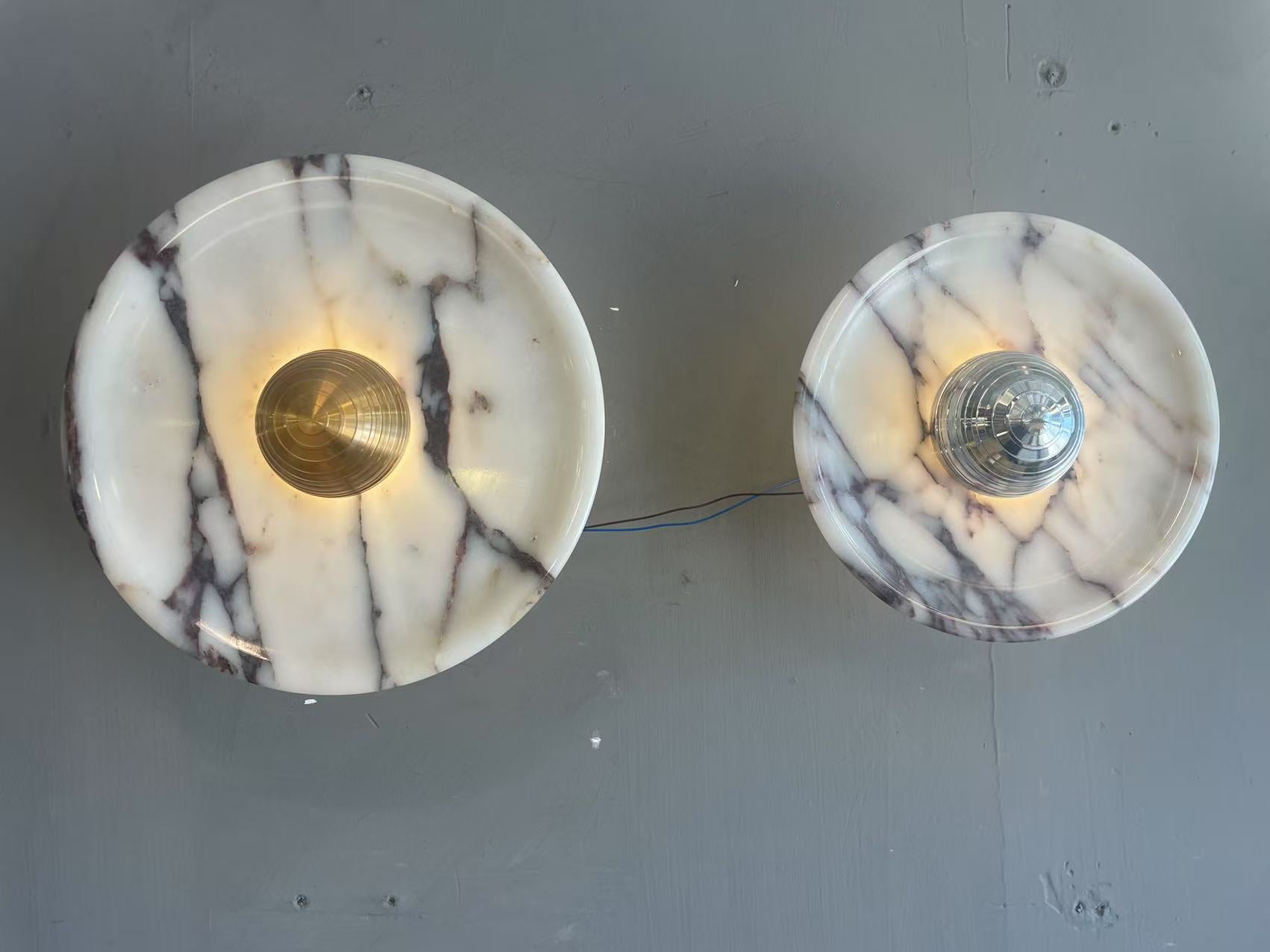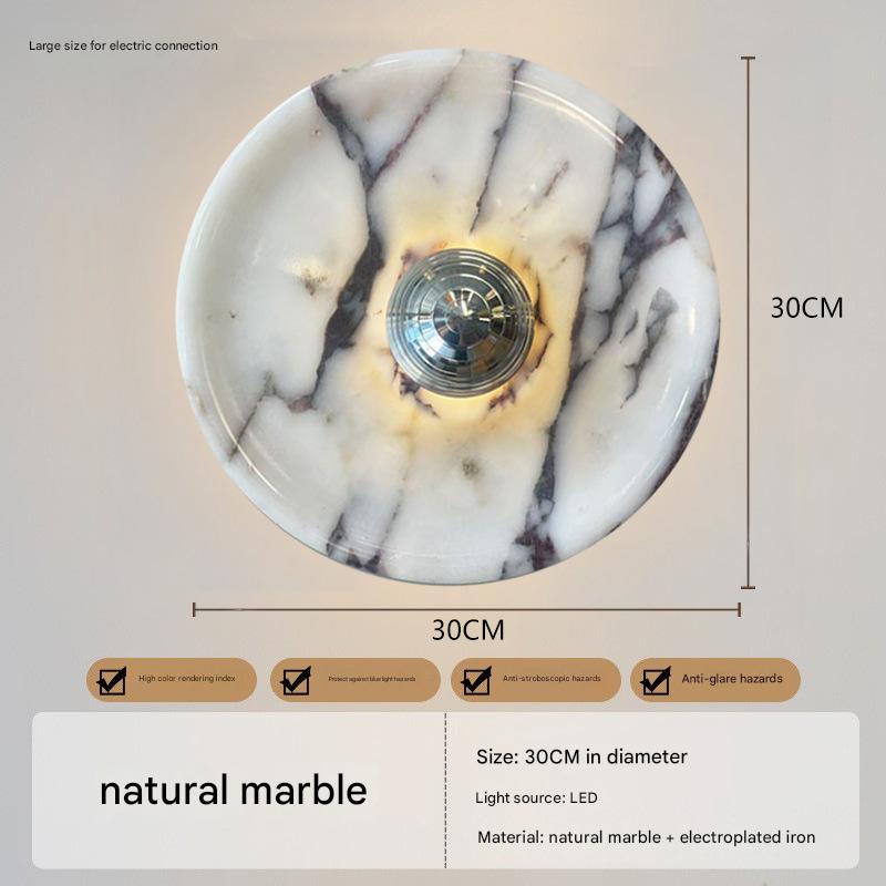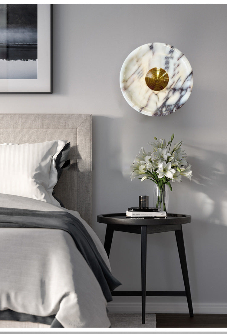 Round Natural Marble Wall Lamp Sconce for Bedroom & Living Room