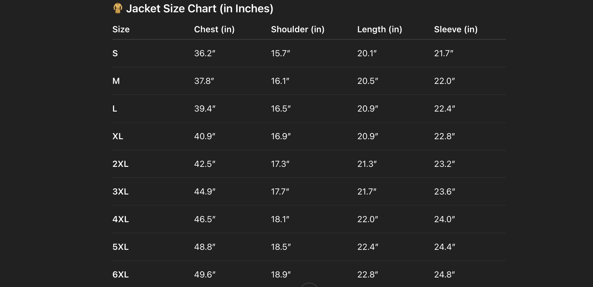 - Please make sure to select the correct size from the chart provided. If you need any assistance, feel free to message us. Each jacket involves significant cost and craftsmanship, and we work on very small margins.