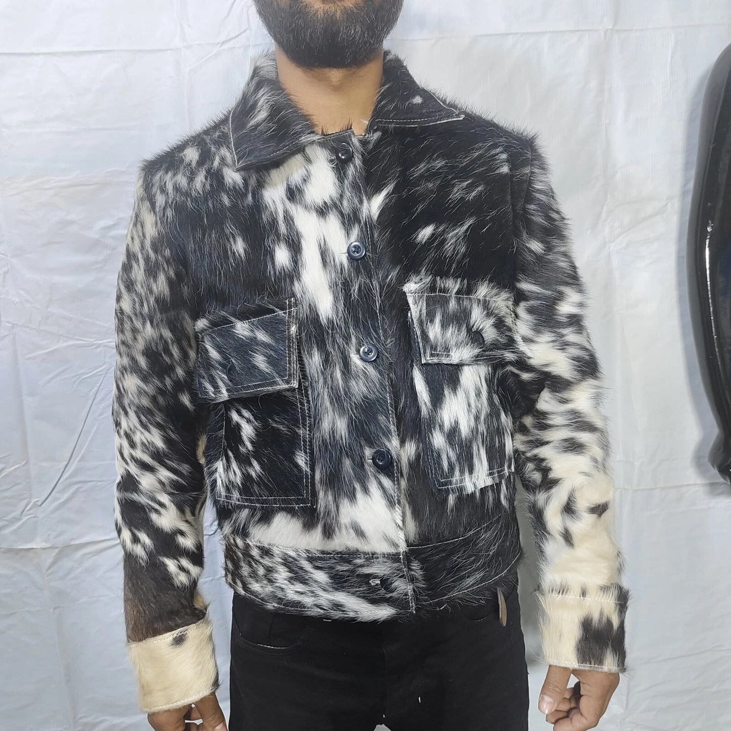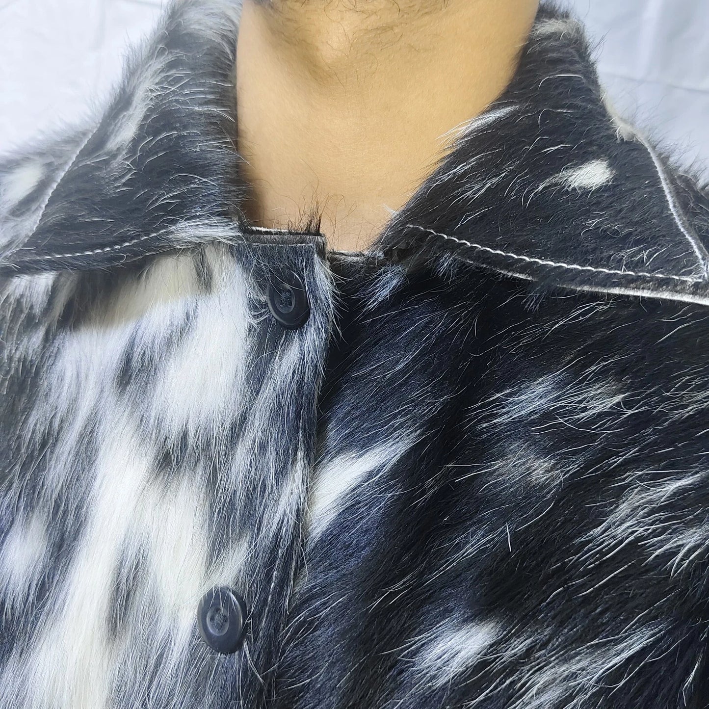 speckled black white cow fur jacket