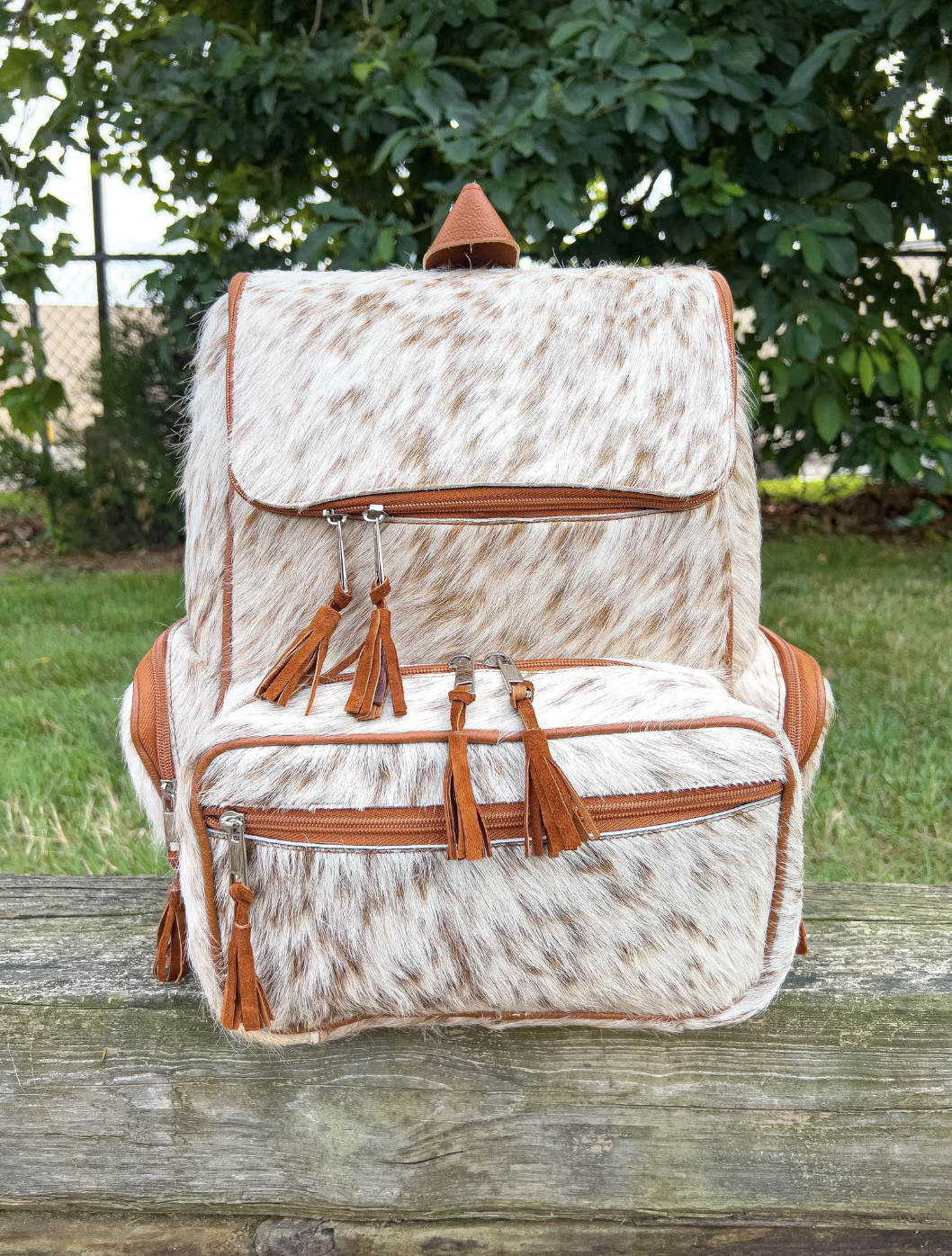 Spotted Cowhide Backpack with Leather Trim – Western Mommy Bag or Travel Pack