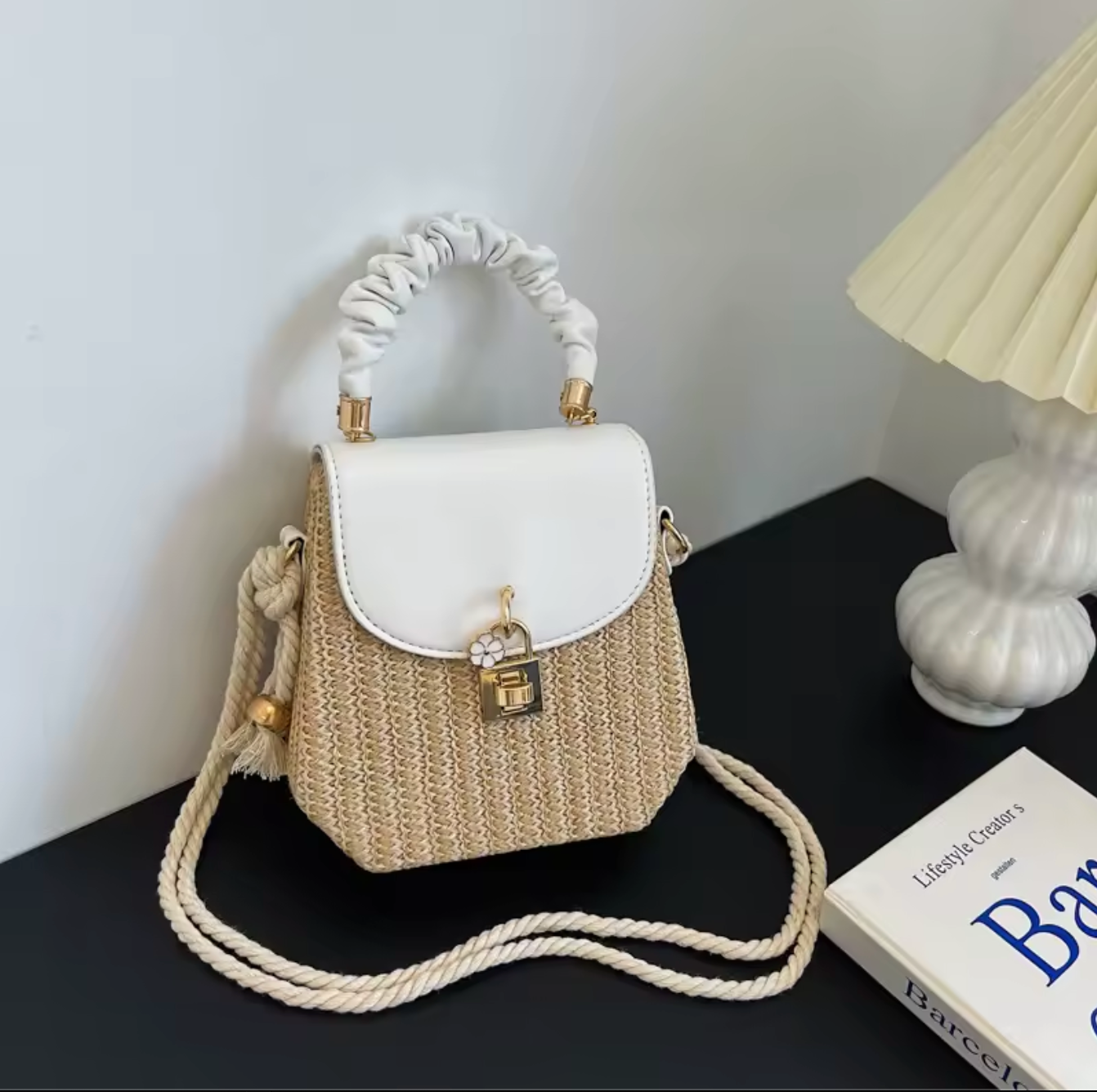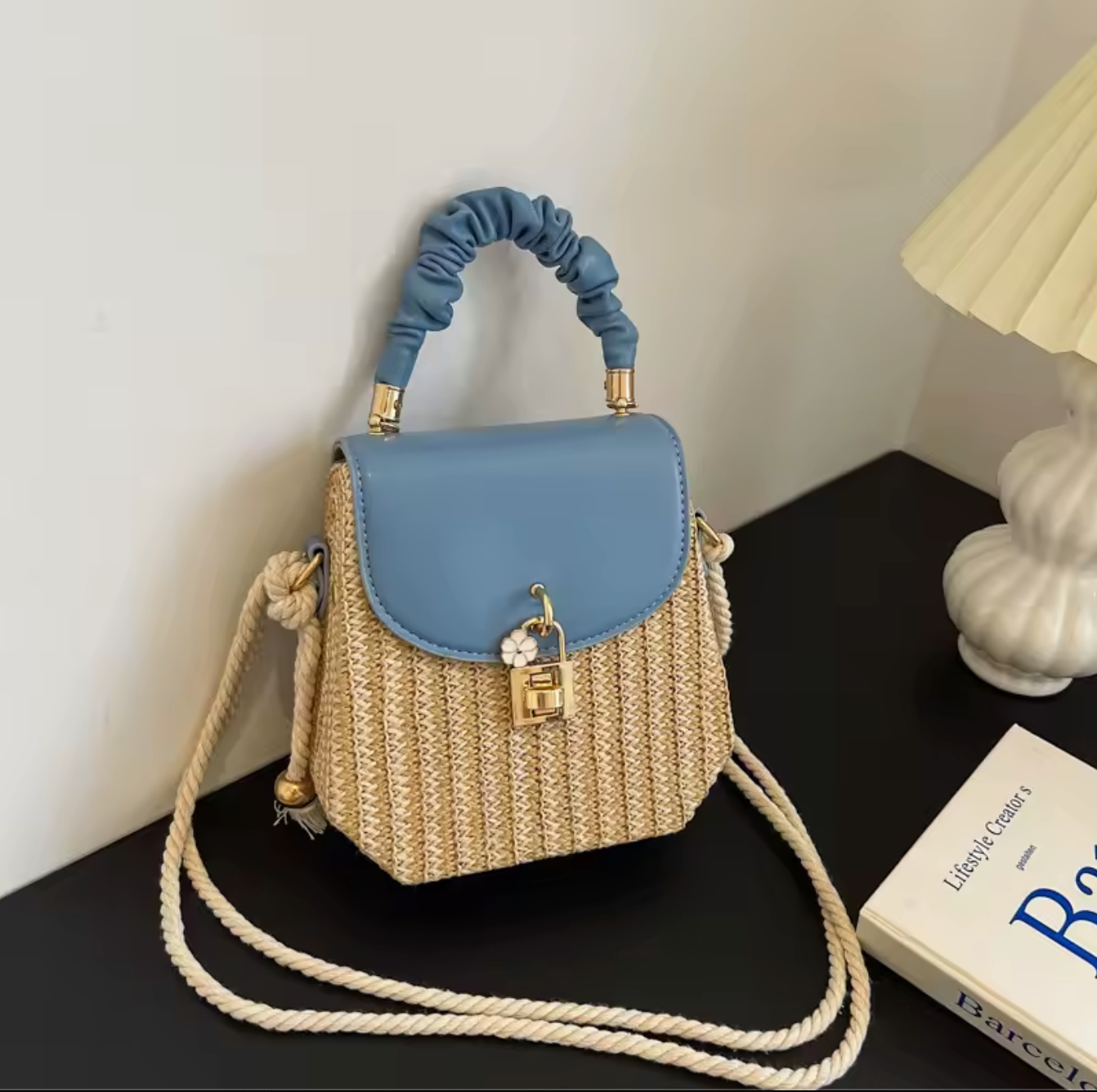 - Lightweight straw bag shoulder bag with flower lock closure for added charm