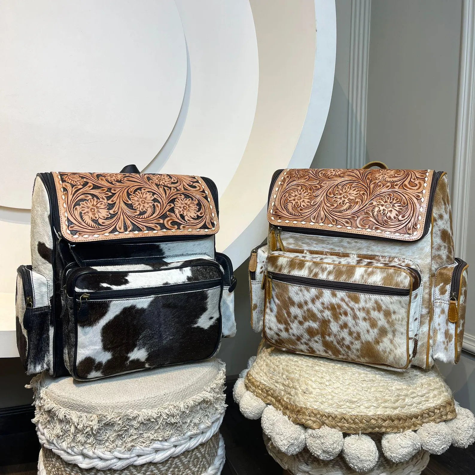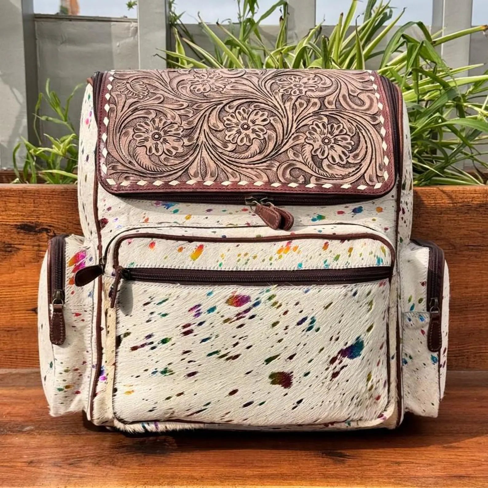 For those looking for a cow skin bag that combines functionality with standout design, this tooled cowhide backpack is the perfect choice. It merges the best of Western craftsmanship with everyday usability, making it a timeless addition to any wardrobe.