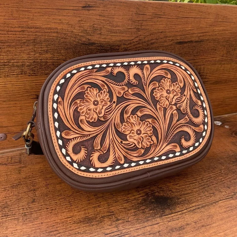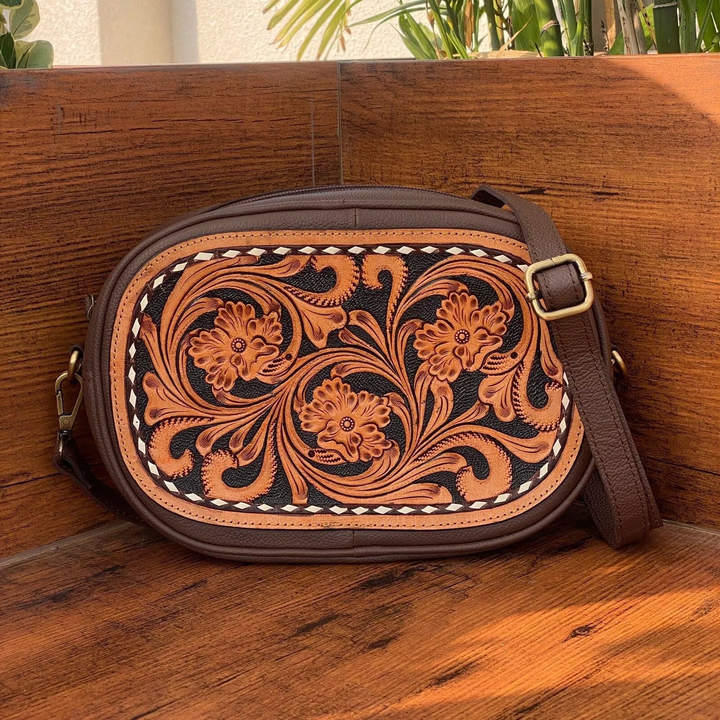 Tooled Leather Crossbody Sling Cowgirl Purse