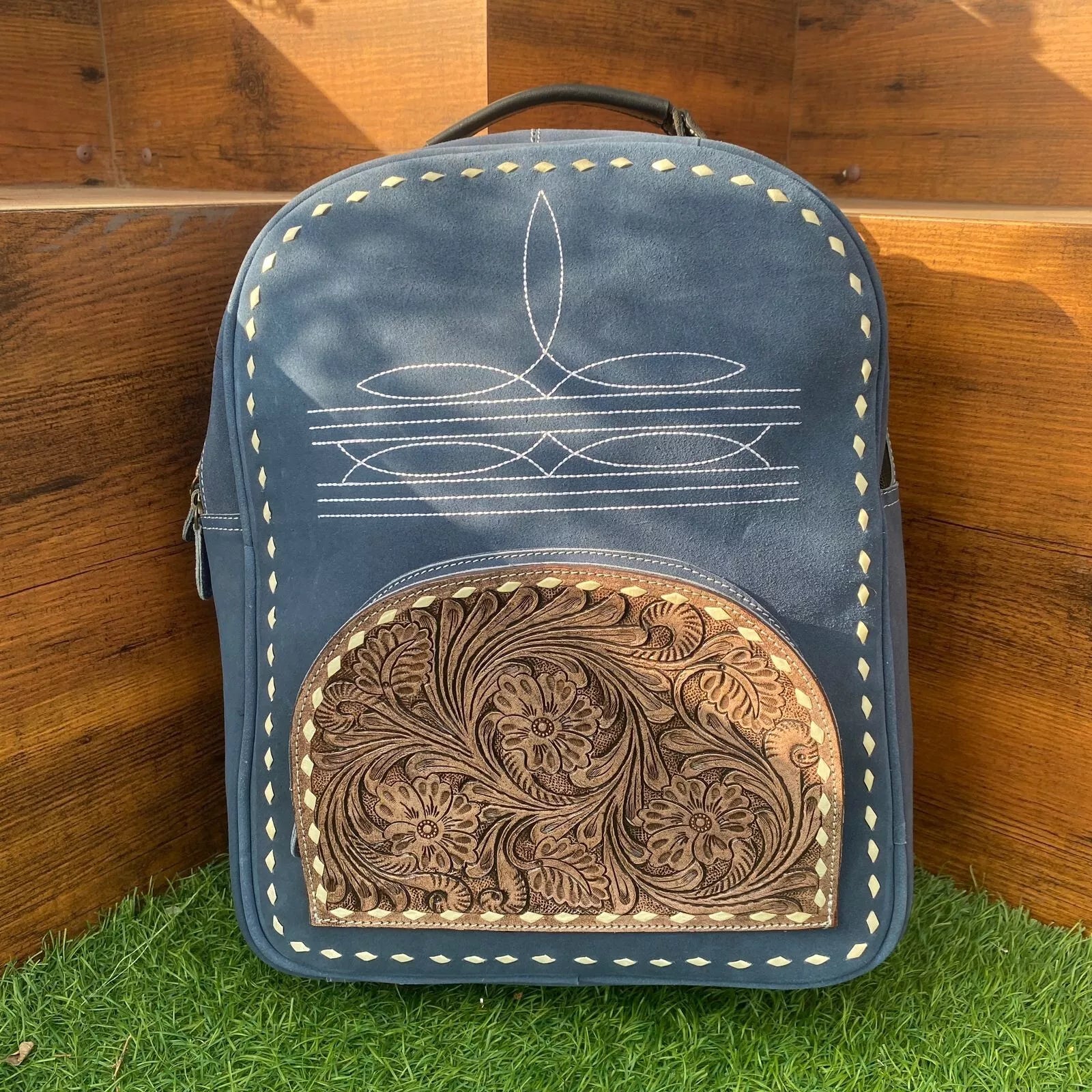 Tooled Leather Suede Backpack for College, Travel, and Western Everyday Carry