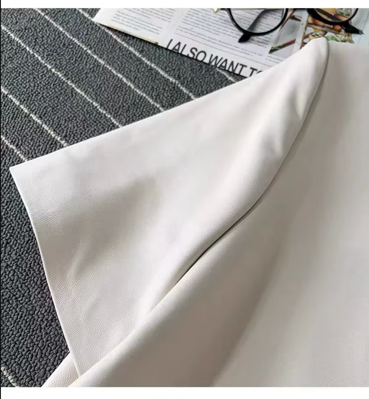 - Soft black leather top designed to drape naturally for a flattering fit