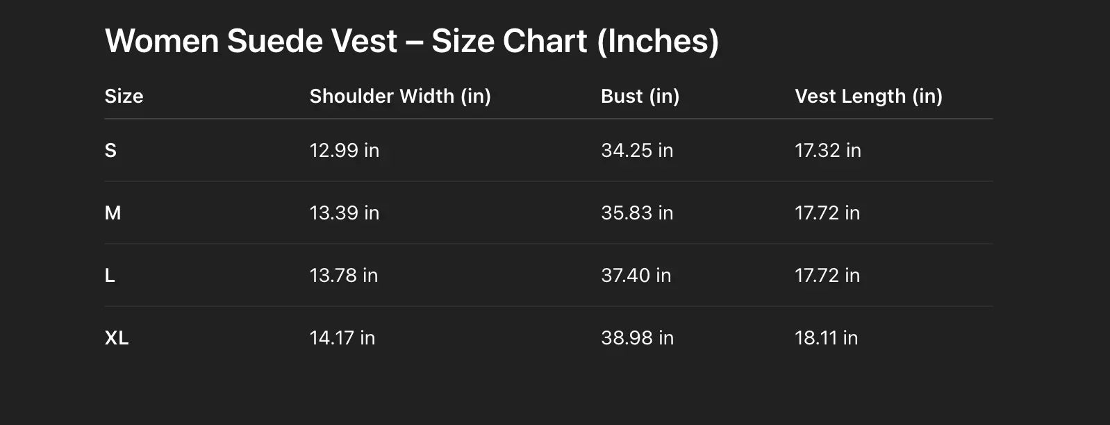 • Please check the size chart carefully before ordering. If you need help, message us anytime. Each suede vest requires high skill and quality materials, and margins are very small.