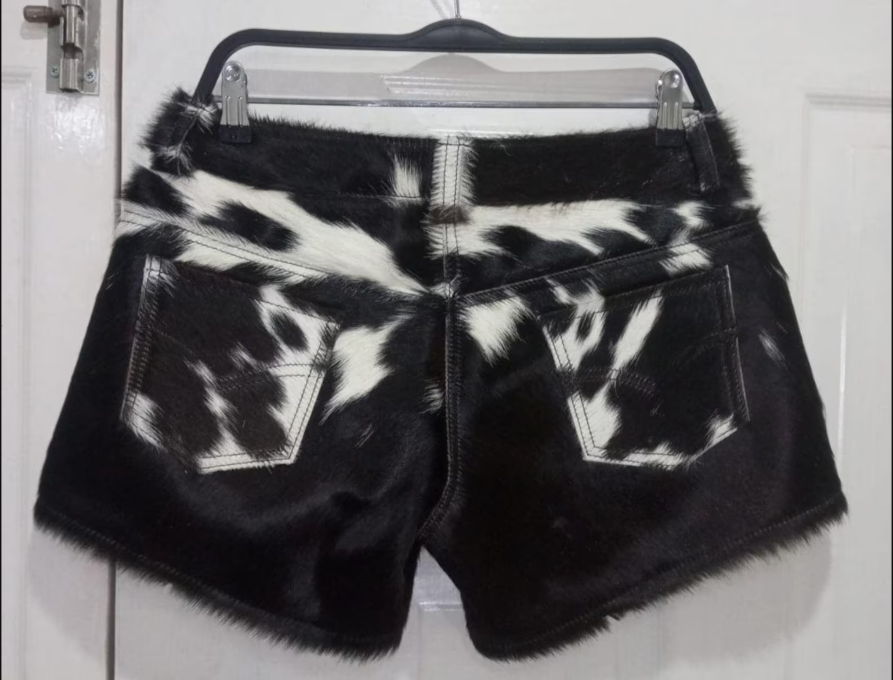- As each cowhide is unique the women shorts you will receive will be similar to the picture, not exactly the same.