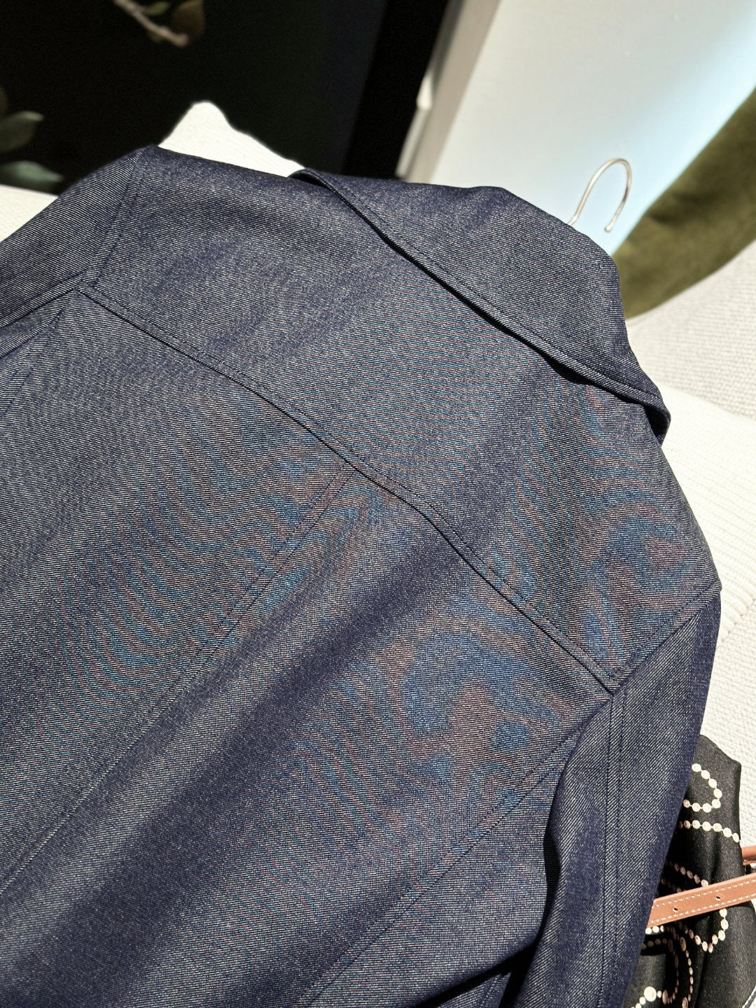 - Cropped jacket length adds a proportional silhouette that pairs well with jeans, trousers, or skirts.