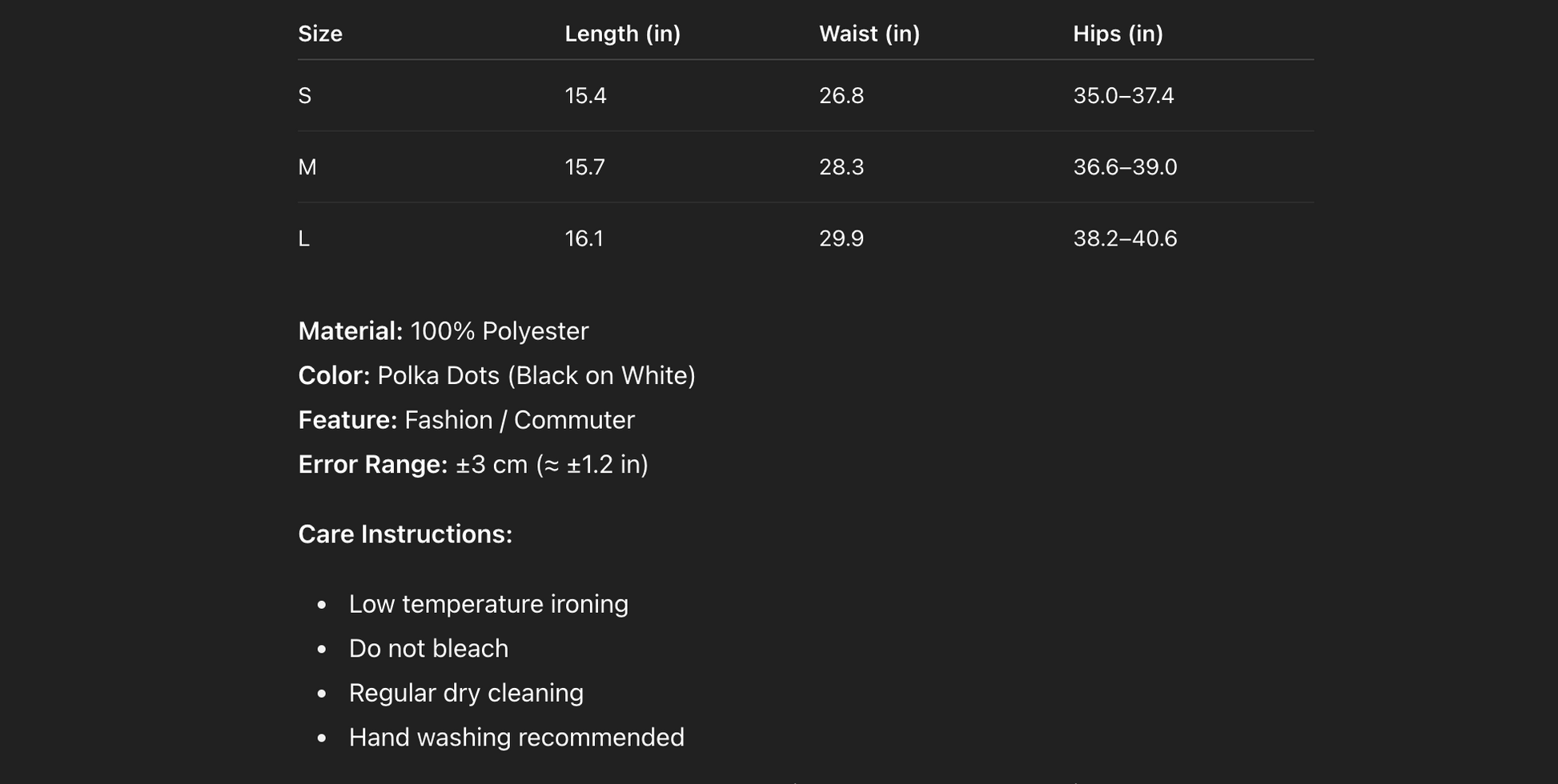 - Smooth side zipper closure for a clean, seamless waistline finish