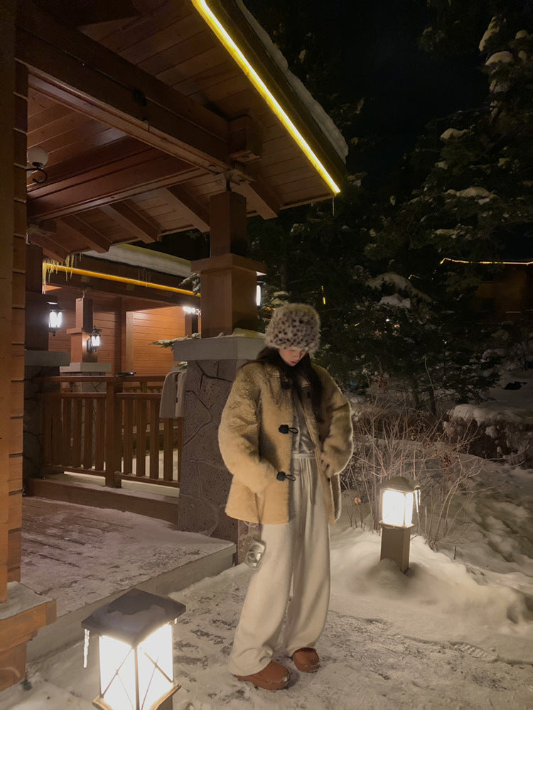 - Lambswool fibers engineered for better heat retention and wind resistance than standard shearling coats